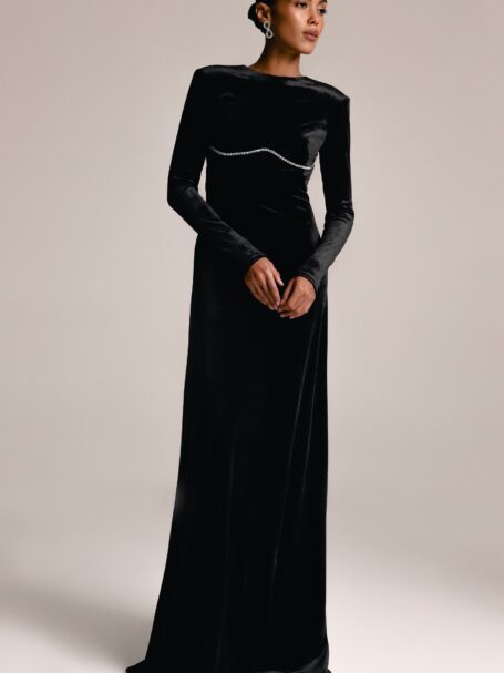 - На замовлення5035 зелена оксамитова сукня на широких бретелях