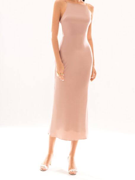 Ця приголомшлива сукня – сучасний шедевр. Довжина міді, виготовлена з блискучого атласу, додає сучасності традиційній весільній моді. Виріз «сердечком» випромінює романтичний шарм, а унікальний дизайн корсету з карлючками додає авангардного відтінку, символізуючи переплетіння кохання пари. Сміливий розріз збоку відкриває рівно стільки, скільки потрібно, додаючи нотку чуттєвості до вишуканості сукні. Це ідеальний вибір для жінки, яка прагне поєднати елегантність з художнім смаком у свій особливий день.