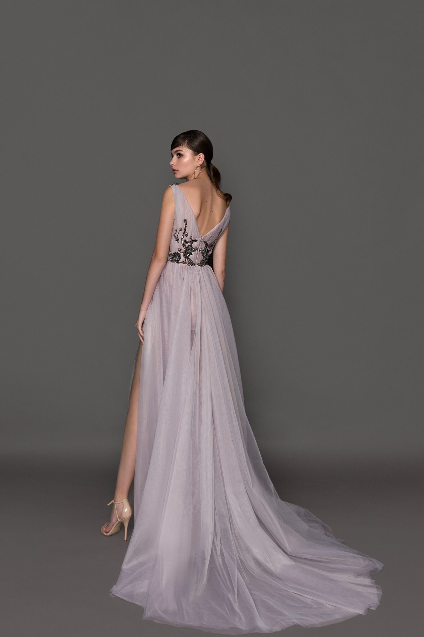 Плаття 19233 відкриває нові горизонти елегантності. Його Blush, Grey відтінок, Lace, Tulle тканина та A-line силует дарують вам почуття легкості.