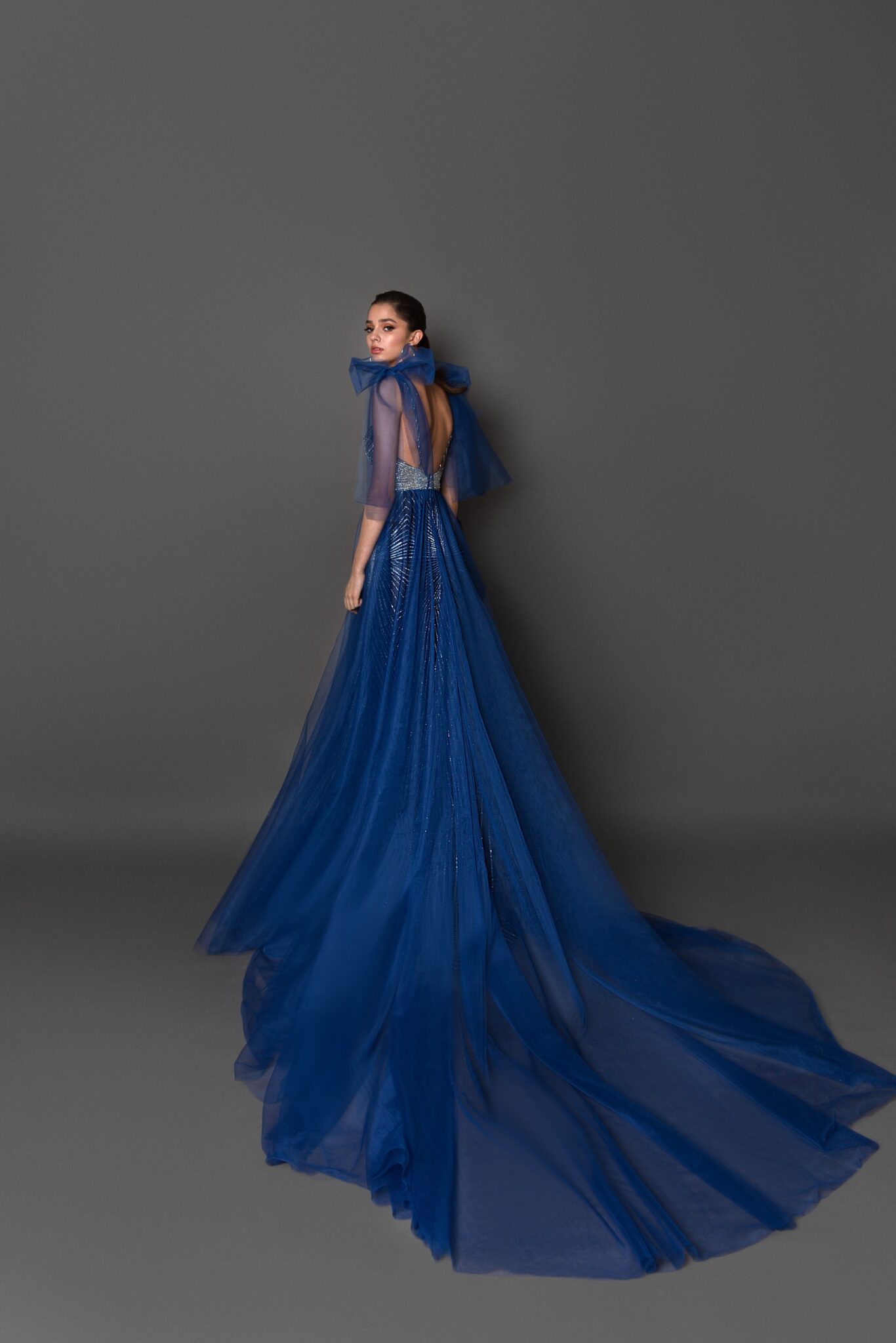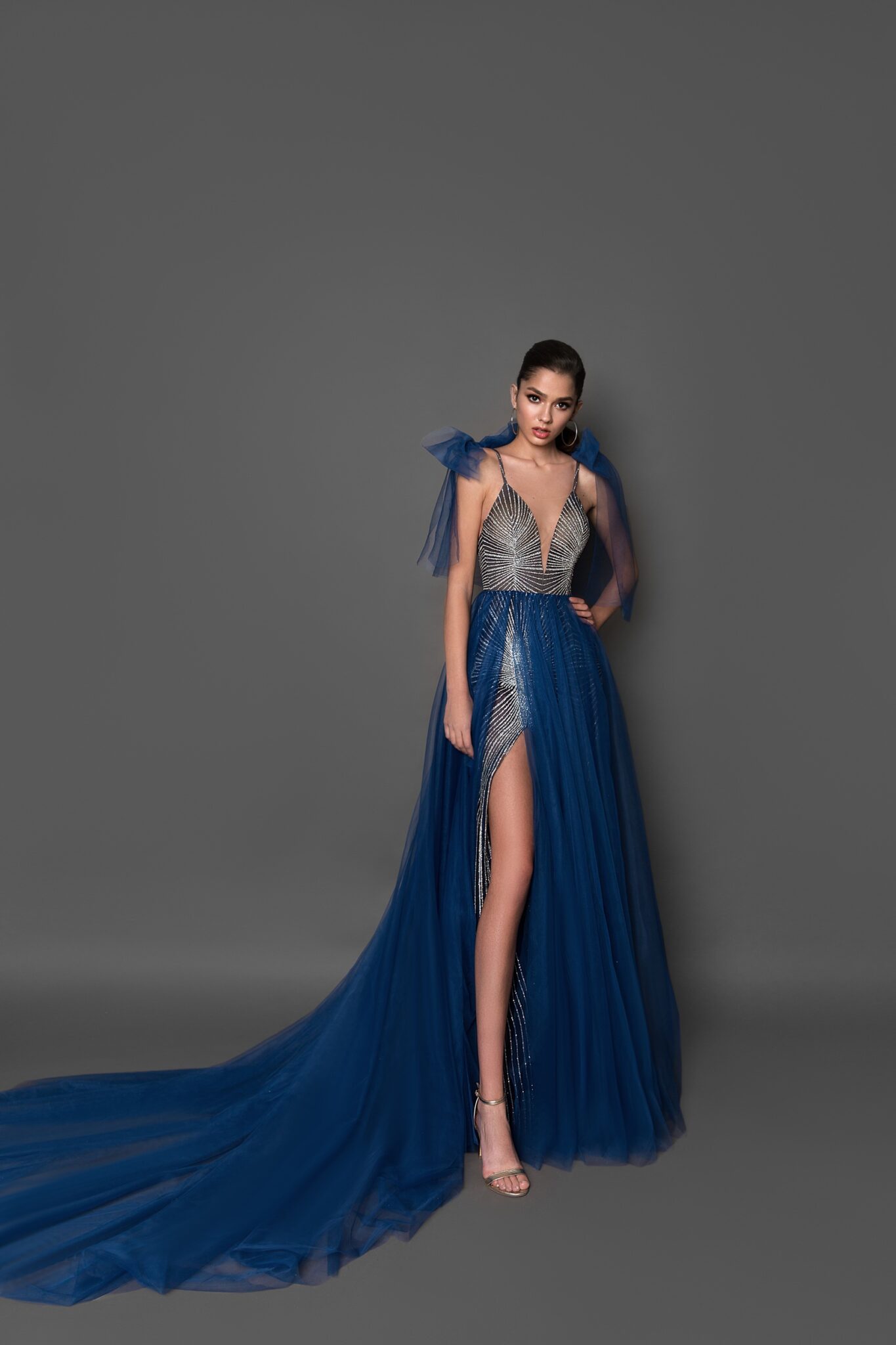 Плаття 19242 розкриває нові горизонти краси. Його колір Cappuccino, Grey, Navy, тканина Sparkle, Tulle та A-line силует заворожують своєю неповторністю.