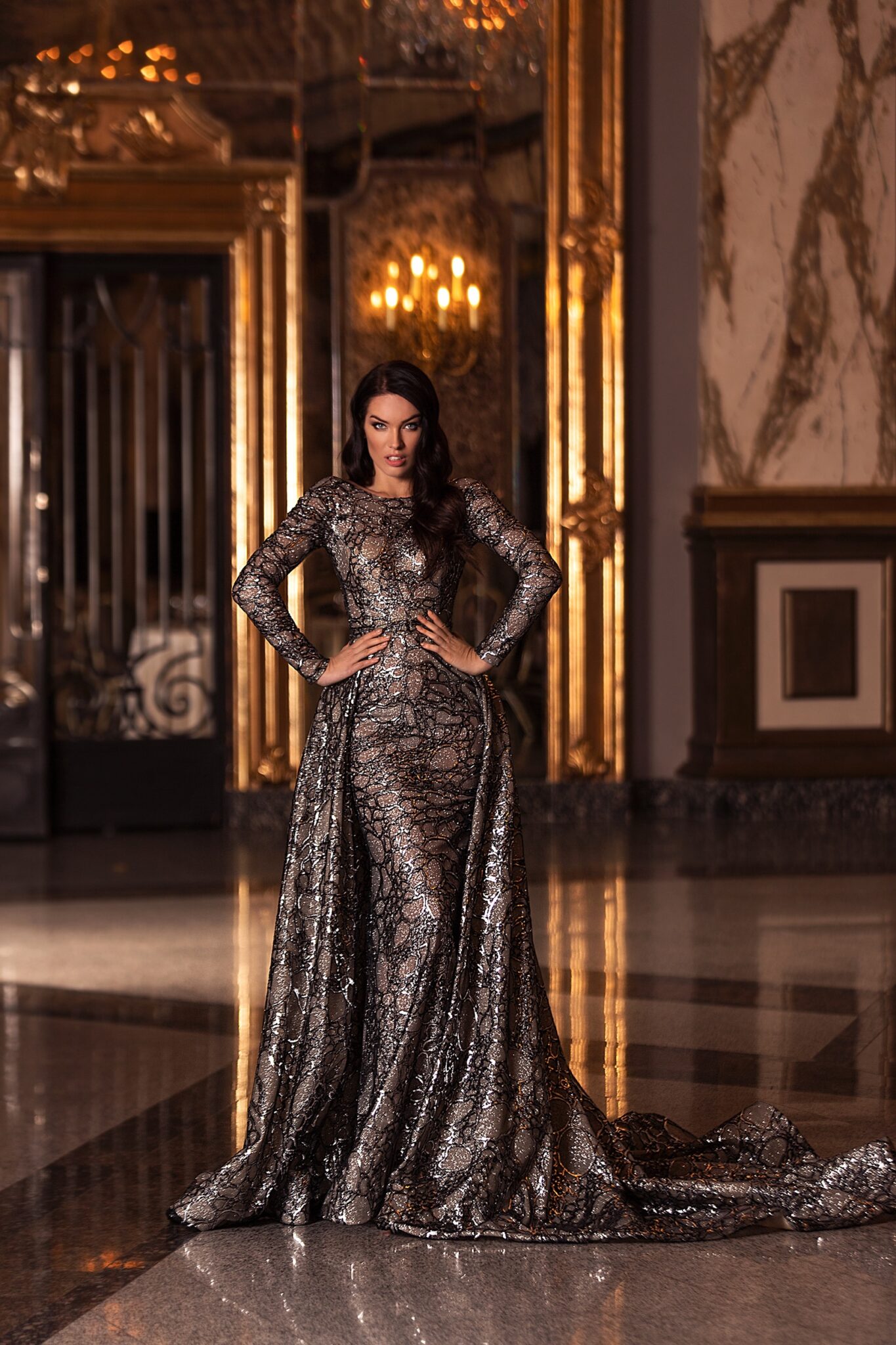 Нехай плаття 20205 розкаже світові про ваш бездоганний смак. Його Original колір, Sparkle тканина та Fitted with overskirt силует говорять самі за себе.