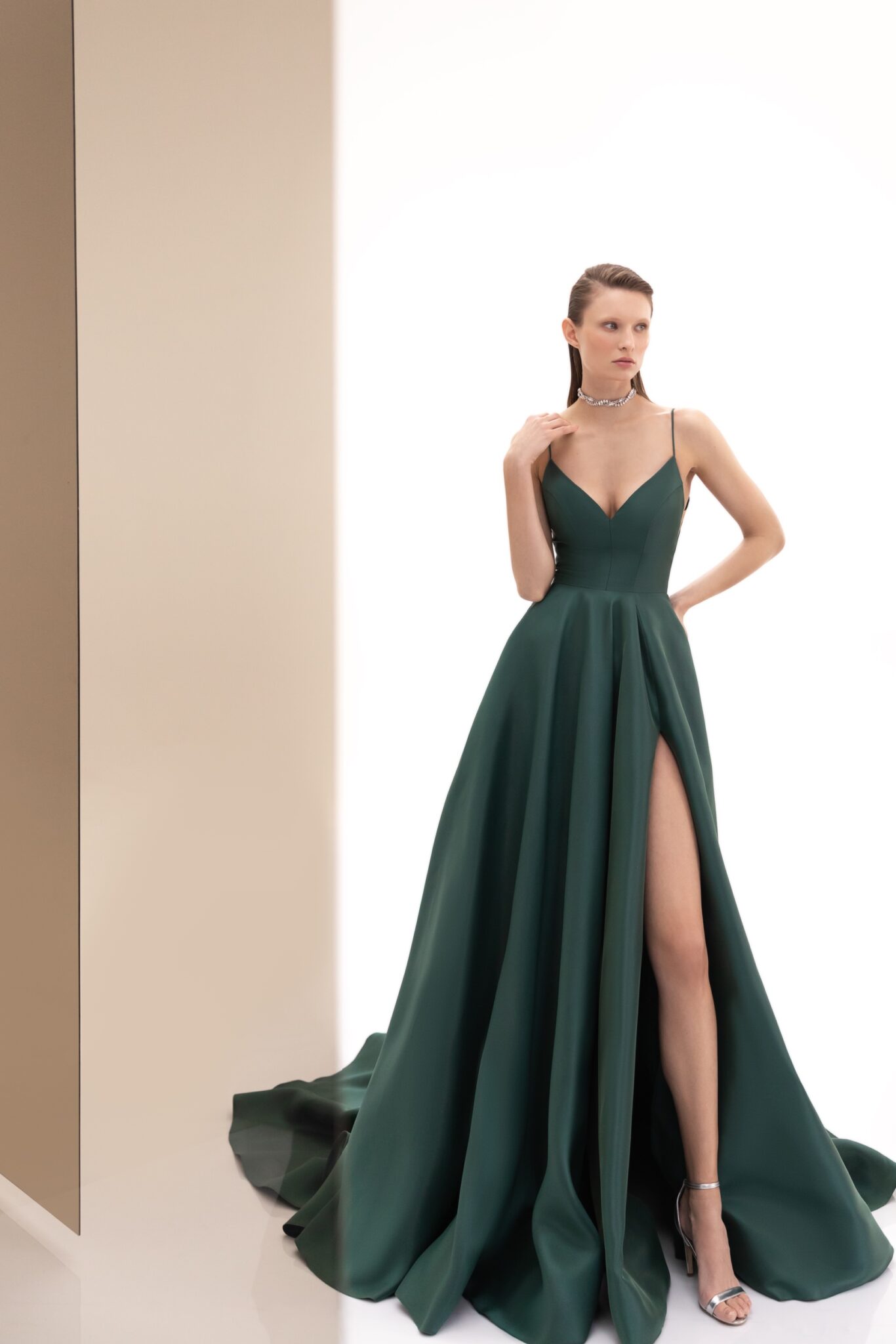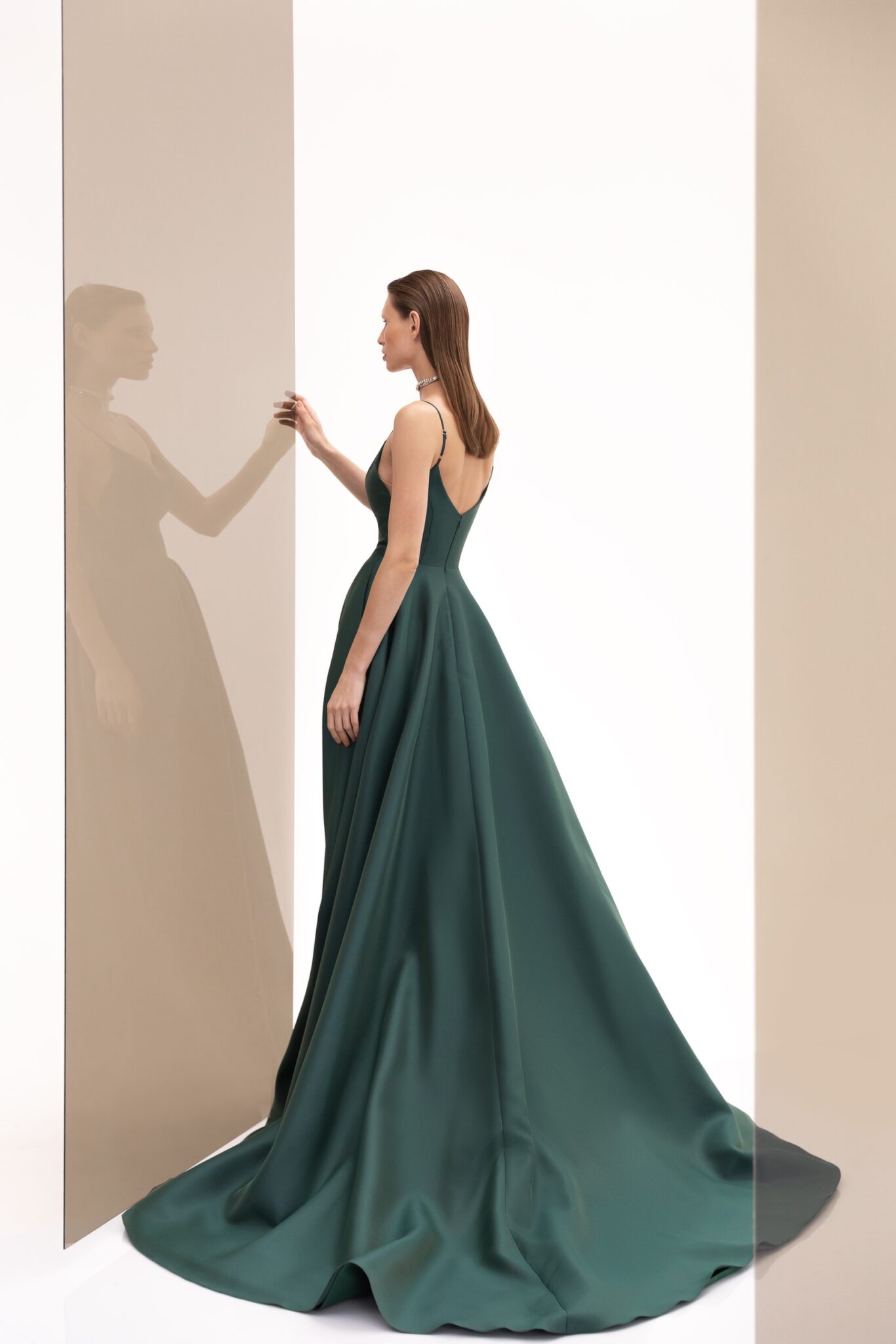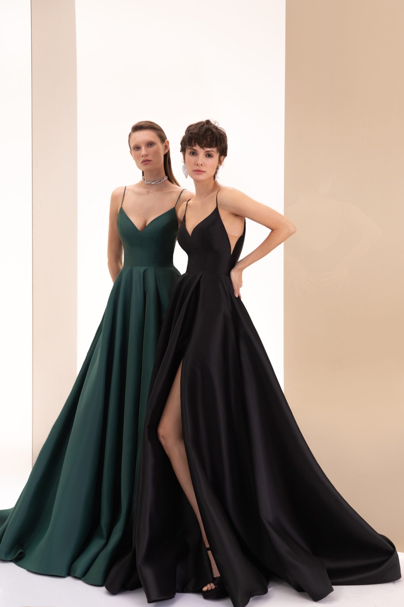 Плаття 22105 стане вашим музою. Його Black, Blue, Blush, Red, emeraldroyal відтінок, Mikado silk тканина та A-line силует відкривають нові горизонти краси.