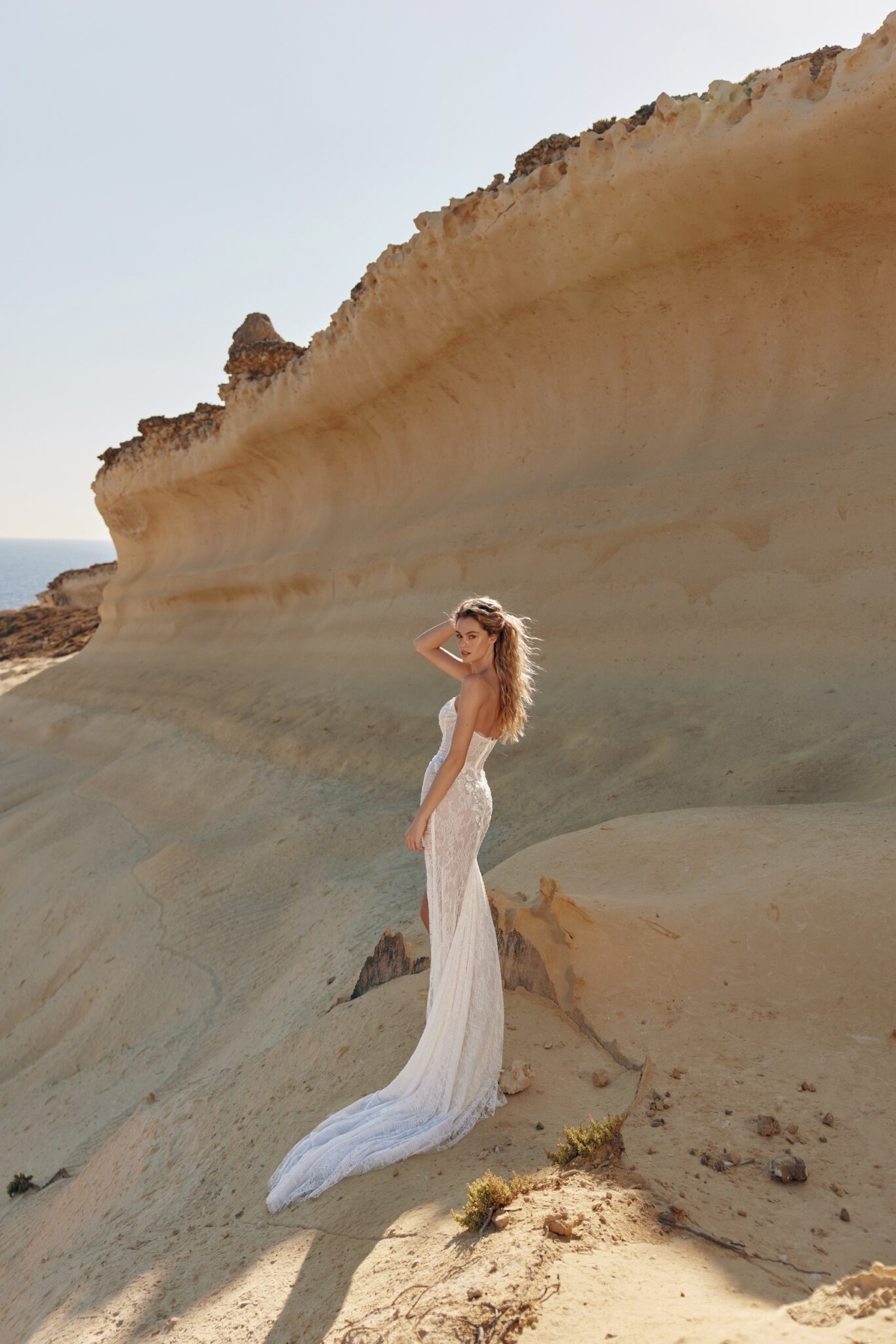 Сукня має глибокий розріз на нозі, акуратно обрамлений мереживом, що додає спокусливості, при цьому зберігаючи елегантність образу. Корсет із м’яким драпіруванням красиво підкреслює фігуру та застібається на приховану блискавку, забезпечуючи бездоганну посадку.