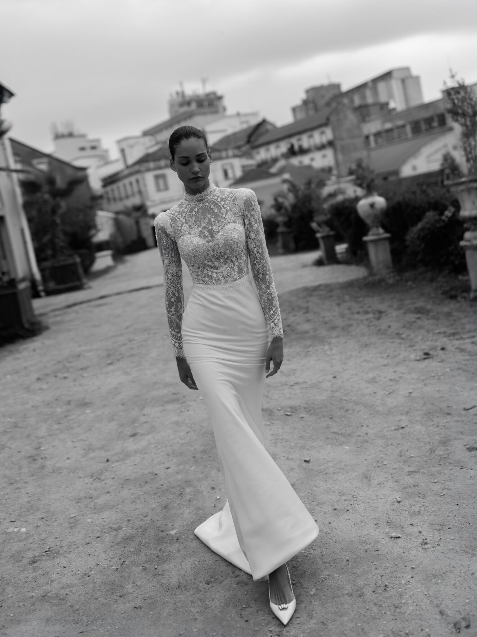 Корсет та спідниця складають єдине ціле, що одягається на мереживну сукню, надійно застібається на блискавку та шнурівку ззаду, забезпечуючи ідеальну посадку та скульптурний силует. Такий дизайн дозволяє нареченій без особливих зусиль трансформувати свій образ протягом усього свята – від романтичної церемонії до стильного фуршету.