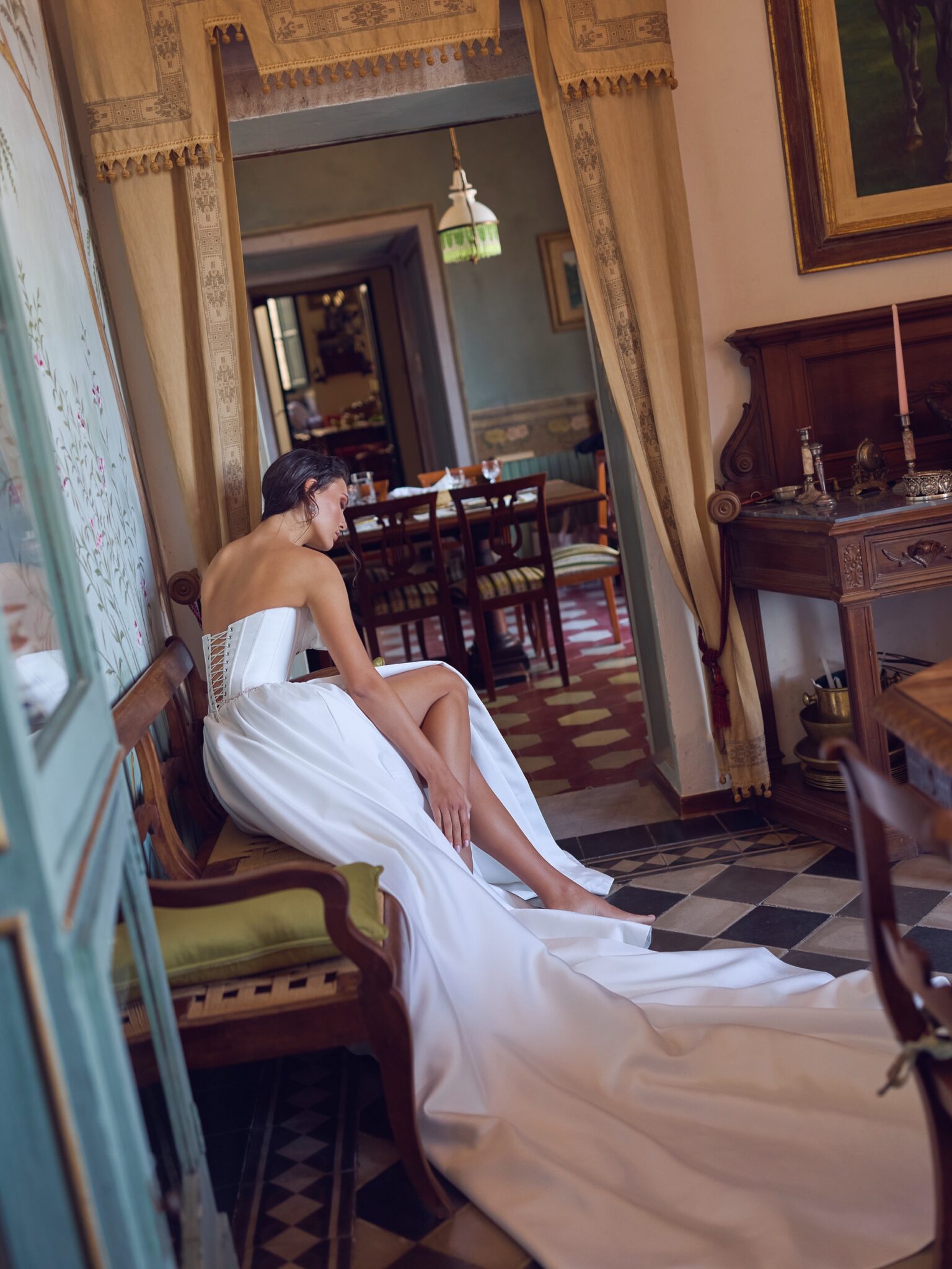 Шлейф довжиною до каплиці легко спадає ззаду, що робить Федру ідеальним поєднанням вишуканості та грайливості.
