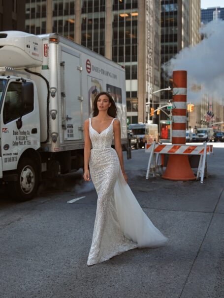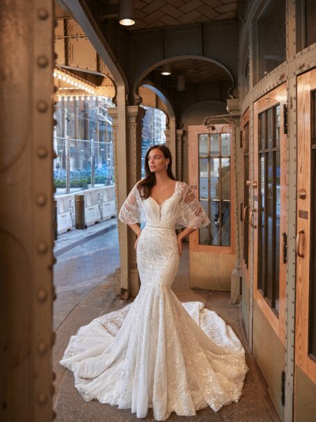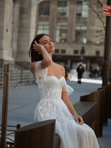 Це неймовірна весільна сукня – справжнє диво весільної моди. Уважно продумані деталі створюють неповторний образ для нареченої. Вона підкреслить її природну красу та грацію, надаючи впевненості у цей особливий день. Елегантність, розкіш та вишуканість – це головні риси цієї чудової сукні.