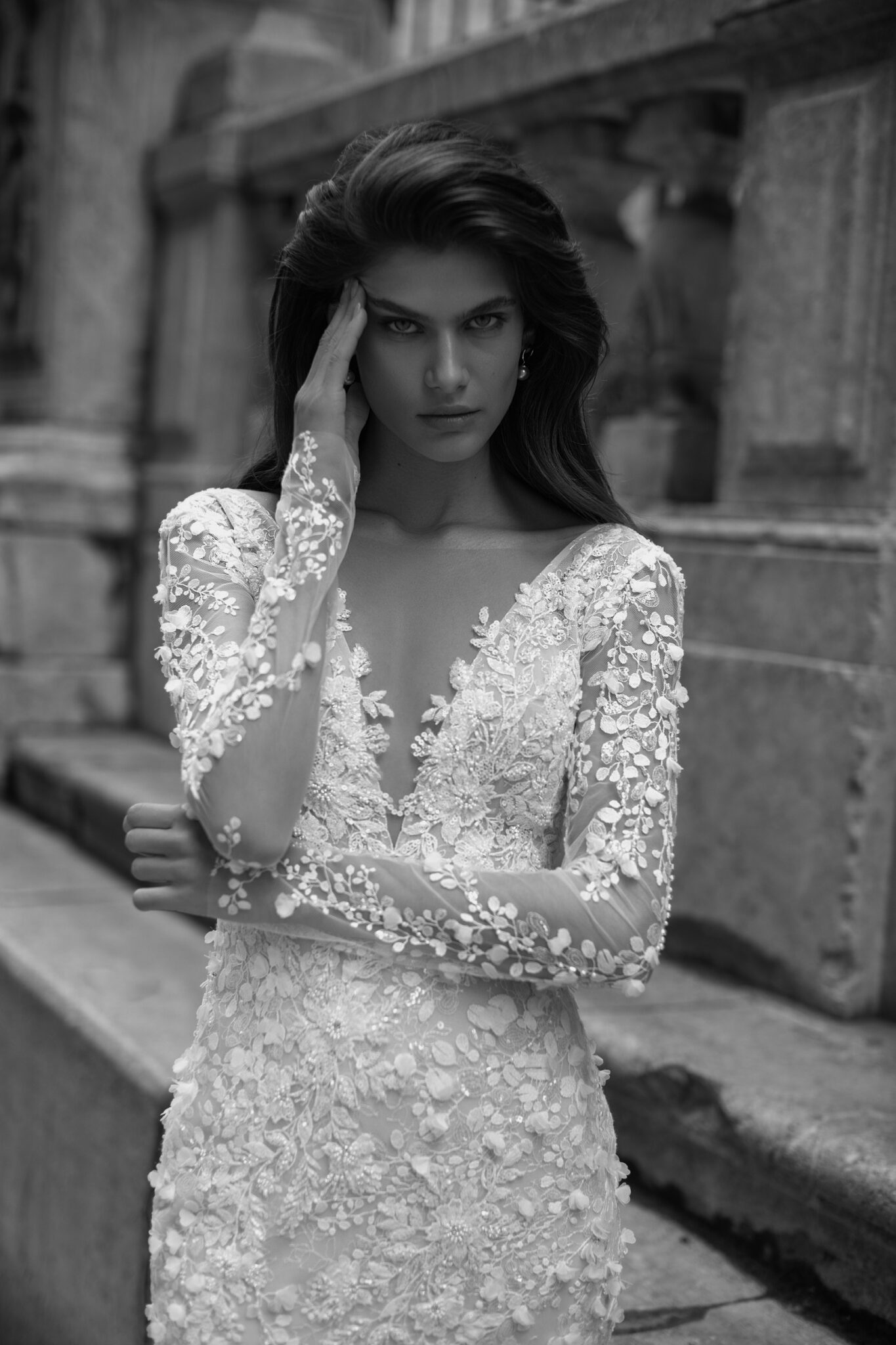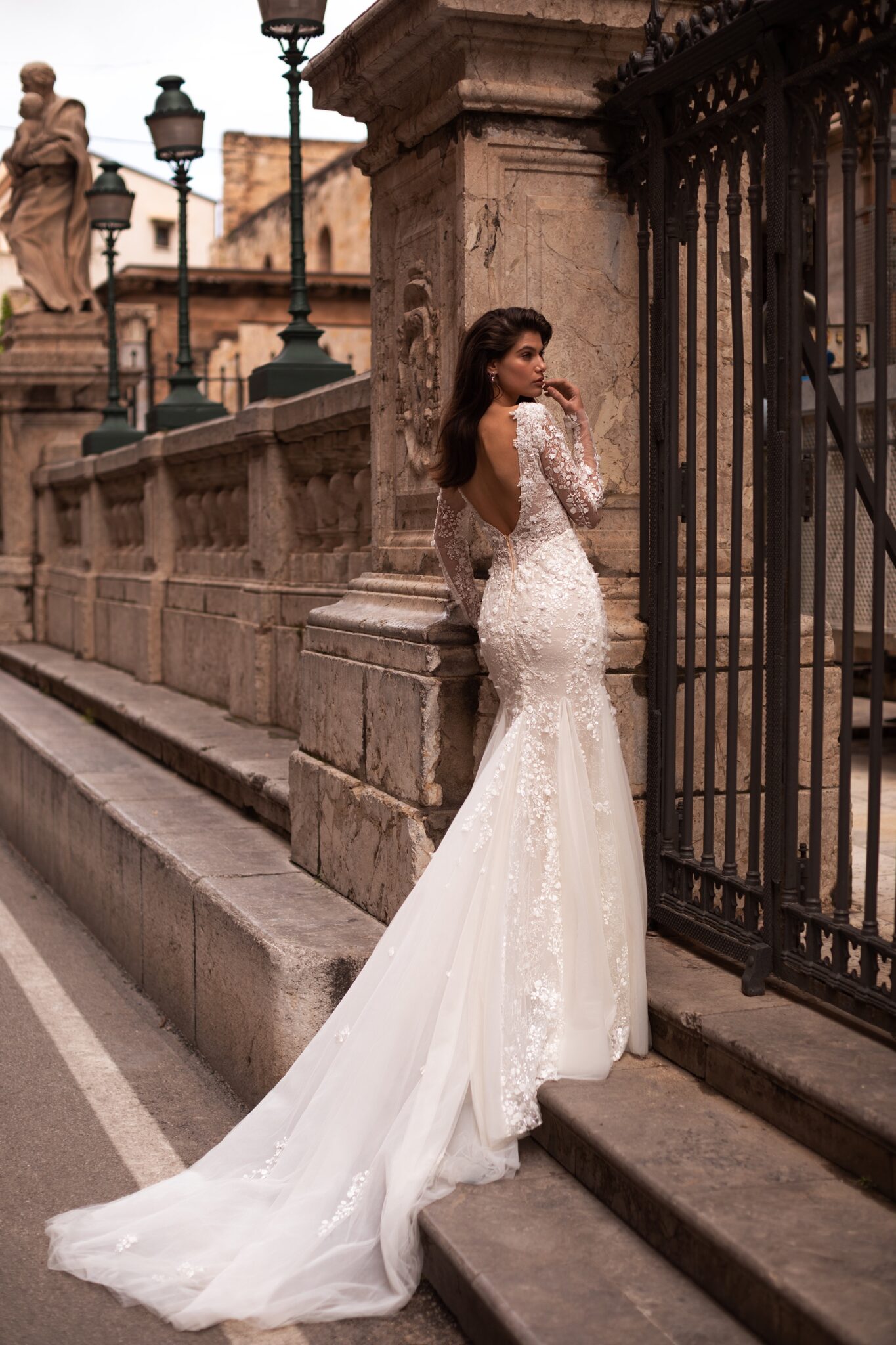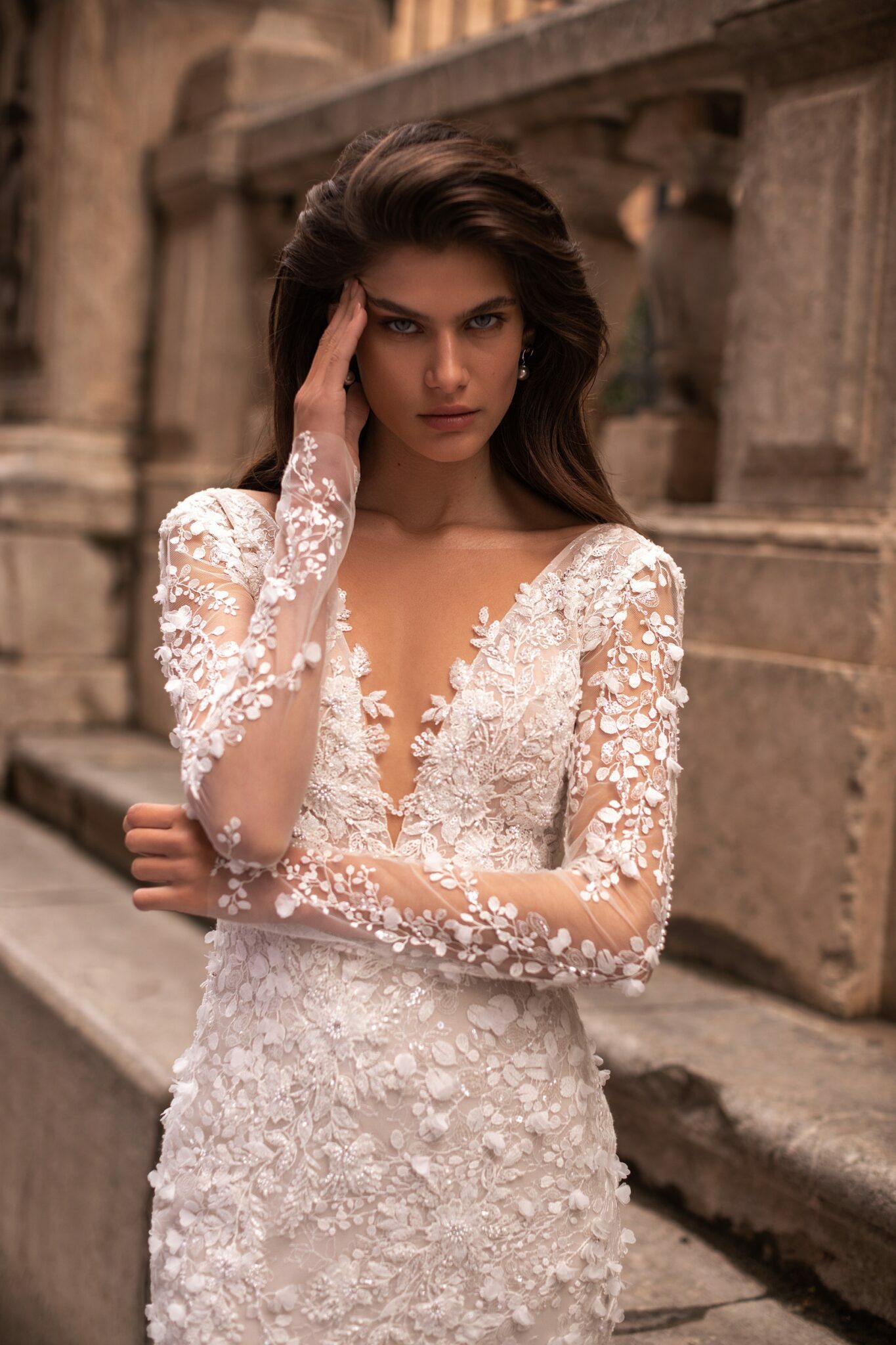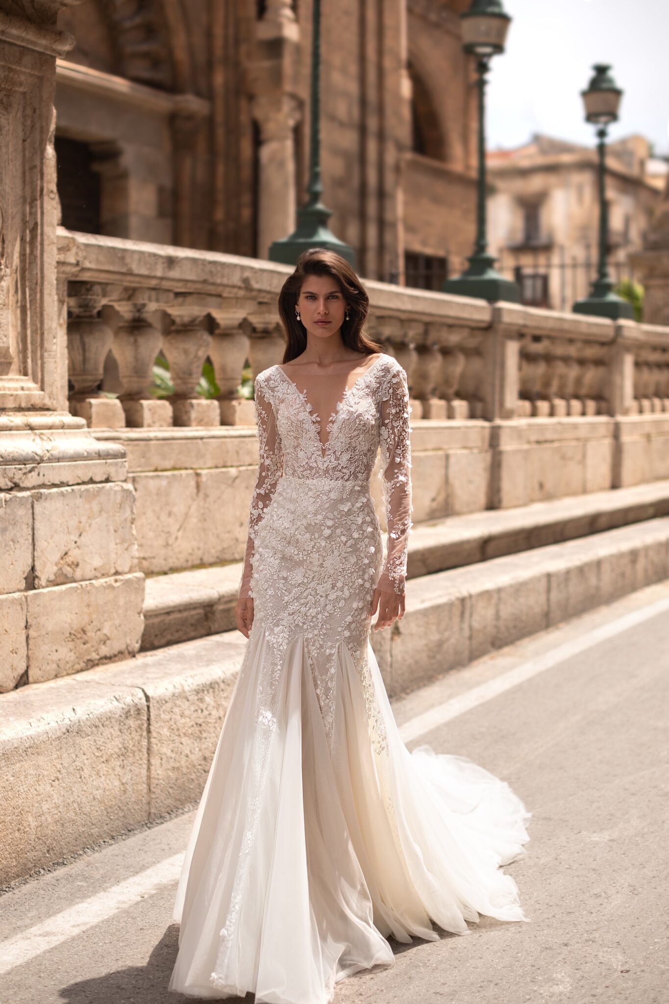 Lorelei – весільна сукня класичного силуету “русалка”, яка підкреслює фігуру нареченої. Весільна сукня прикрашена вишивкою у вигляді листя, вишитої з трьох мір, декорованої бісером, паєтками та кристалами. Довгі прилеглі рукава виконані з прозорого мережива, декорованого вишивкою з бісеру у вигляді тату. Глибокий V-подібний виріз на грудях робить цю сукню більш спокусливою, а також відкрита спина знизує нижню межу спини. Спідниця, прилягаюча на стегнах, плавно переходить у кілька шарів м’якого тюлю від колін донизу, завершуючись довгим шлейфом.