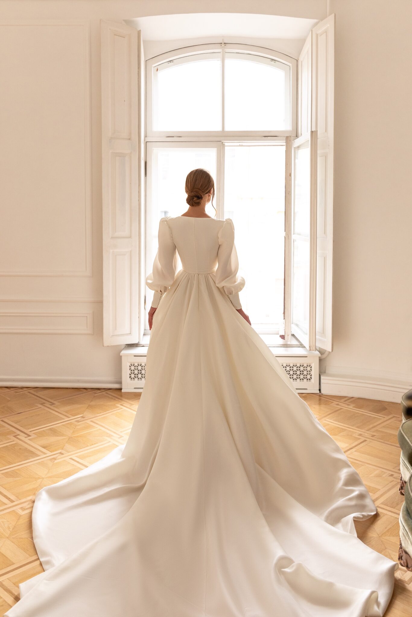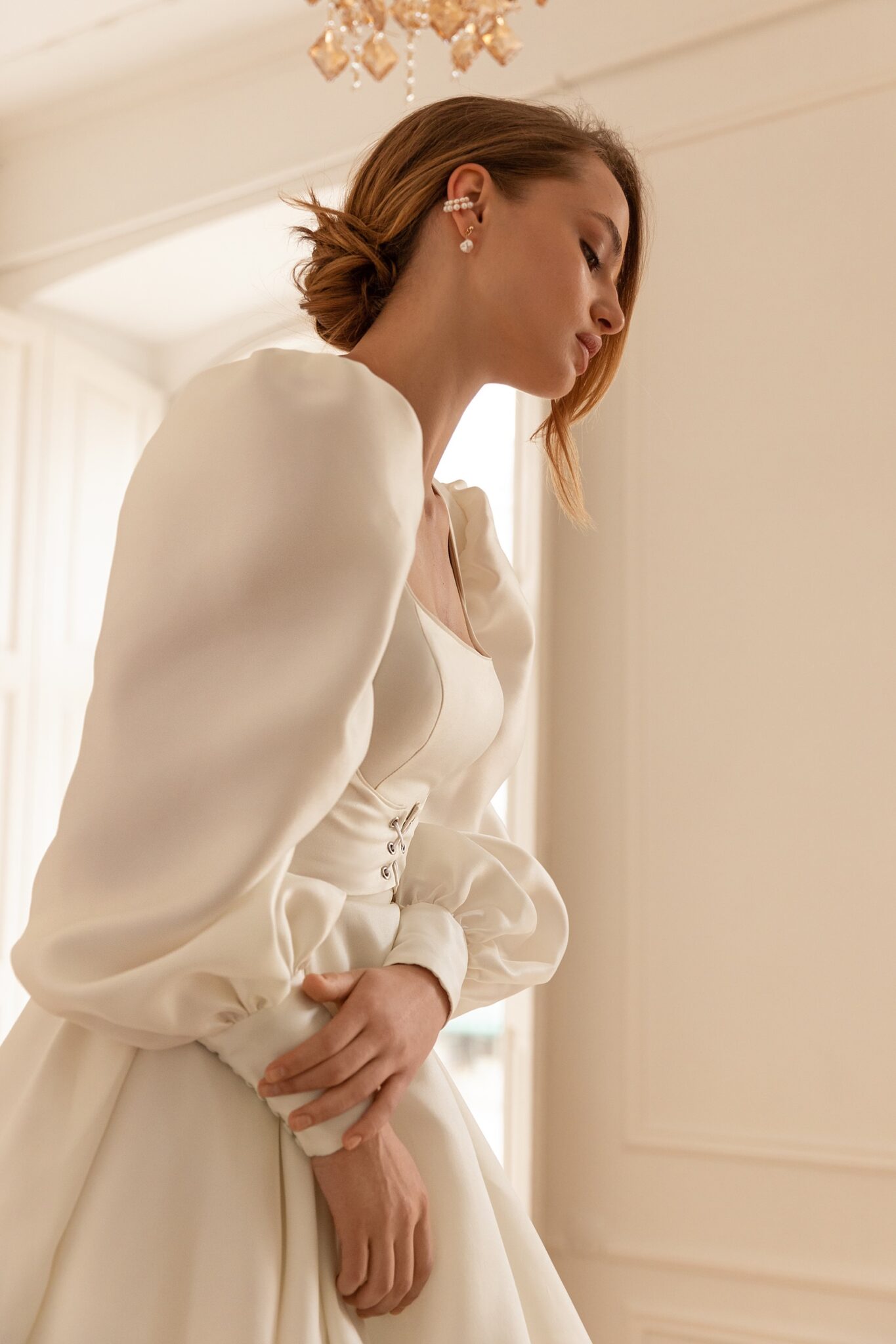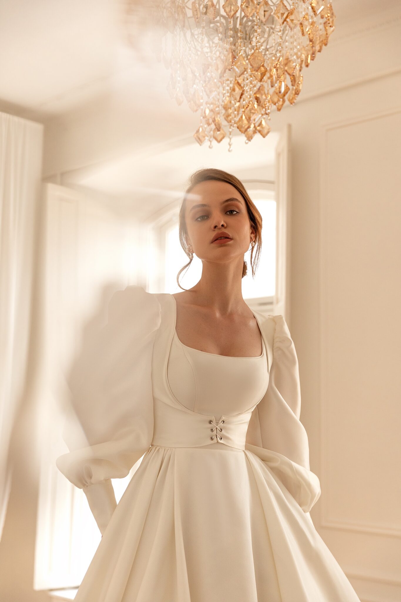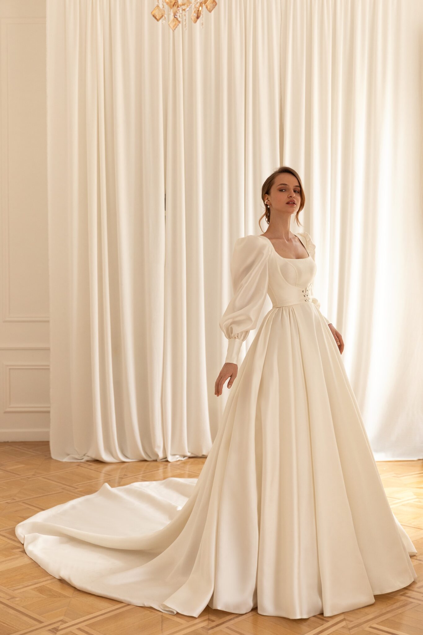 Mary – фантастична весільна сукня в середньовічному стилі. Вона зроблена з глянцевого атласу та має знімний болеро. Сукня в формі корсета має об’ємну спідницю в стилі бального сукні з прикрасами квадратного вирізу і широкими ремінцями. Об’ємна спідниця переходить в довгий розкішний шлейф. Болеро виконано з того самого атласу з вільними збірками на рукавах та зав’язкою спереду.
