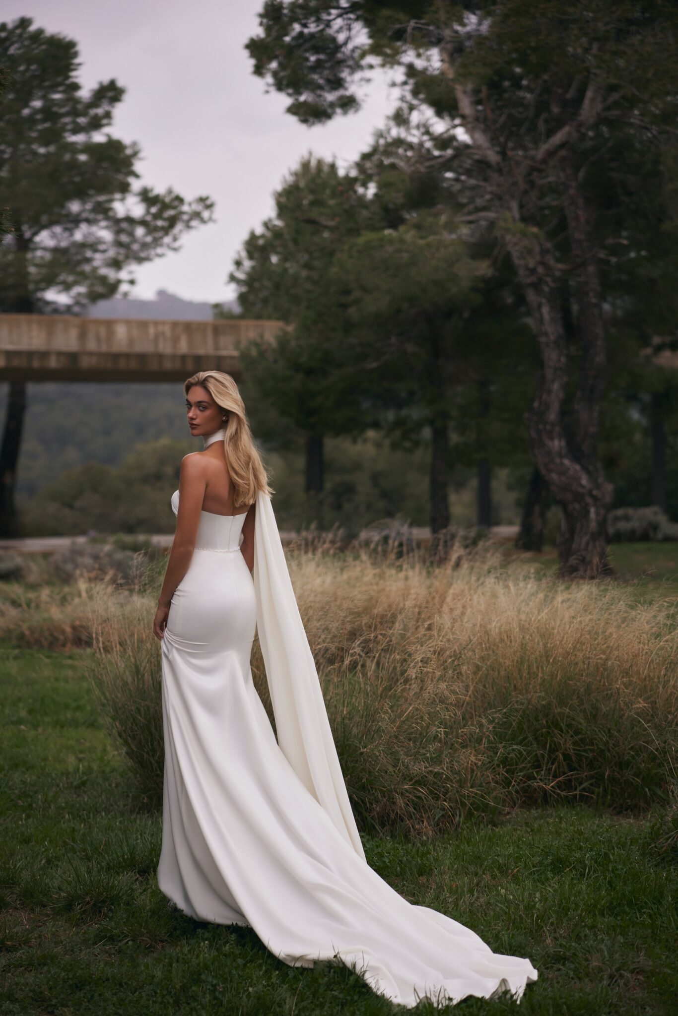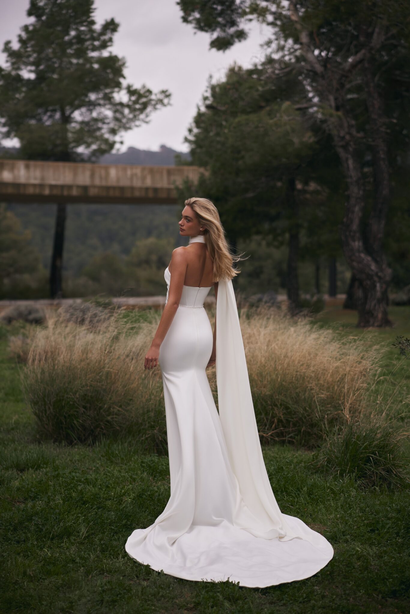 Деталь-шарф на шиї витончено каскадом спадає з правого плеча, додаючи нотку вишуканості.