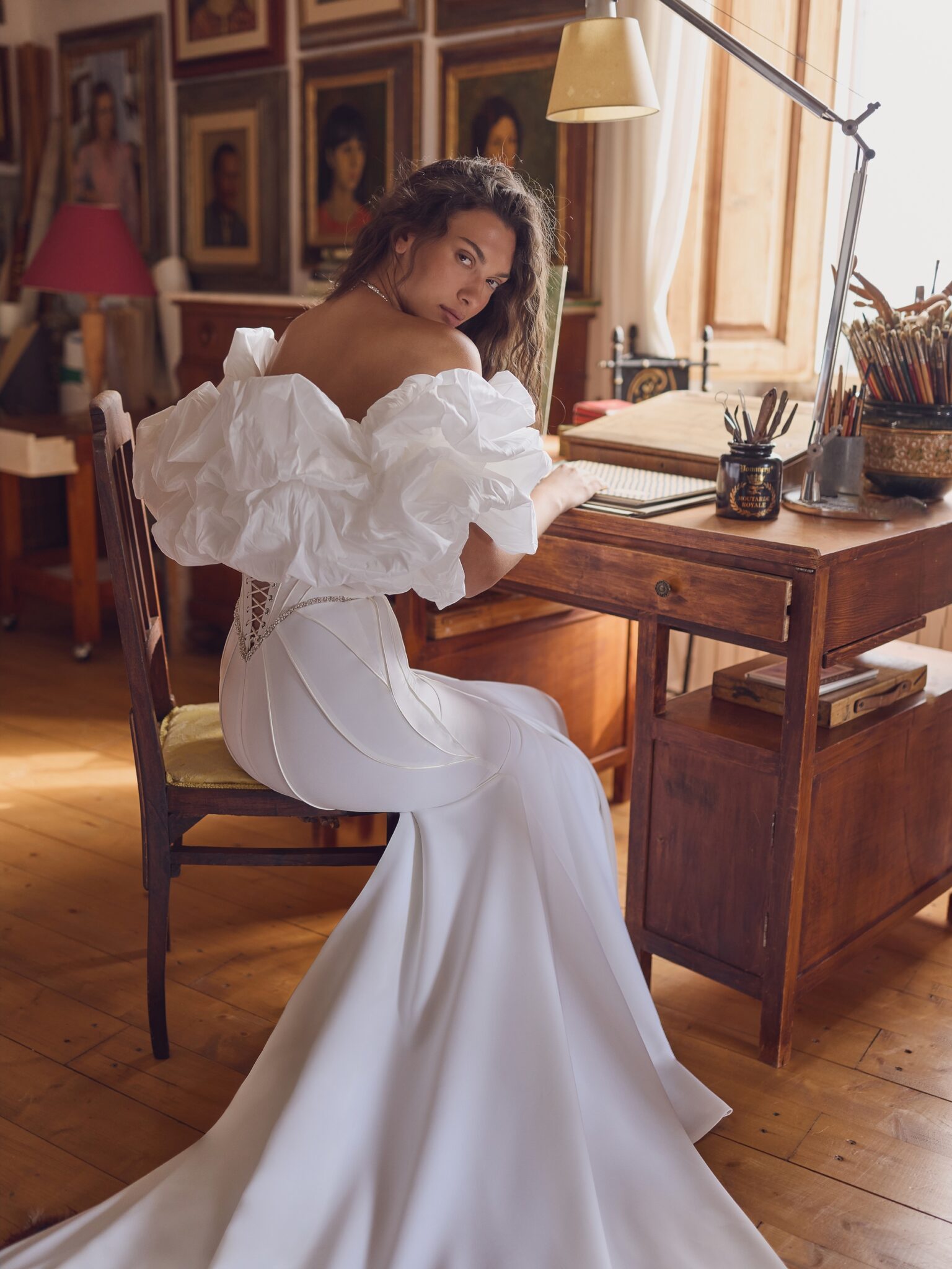 Завершує ансамбль розкішний шлейф, що елегантно спадає за спиною нареченої та залишає незабутнє враження. Одісея – справжнє свято впевненості, сили та сучасної розкоші.