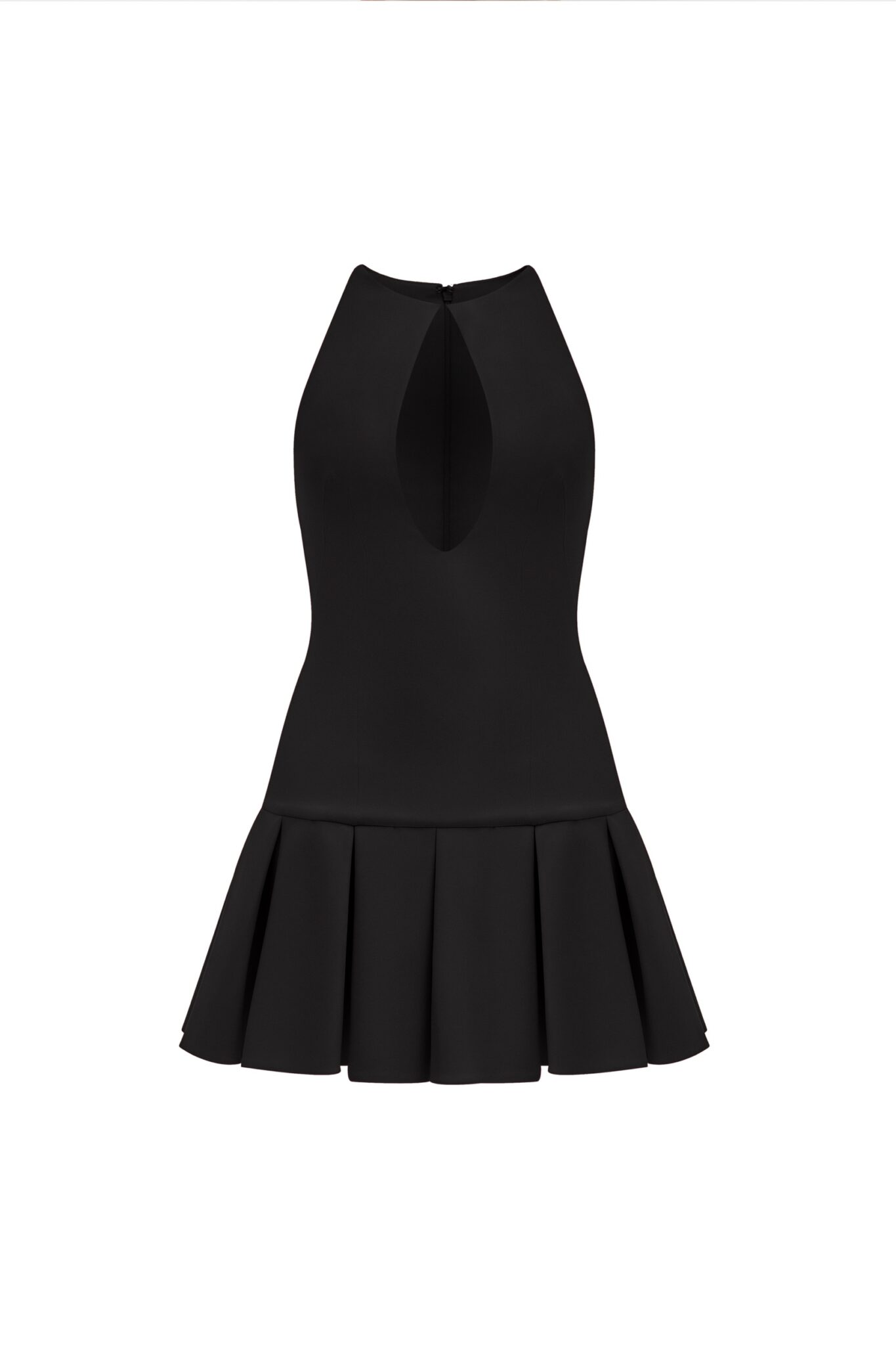 Міні-сукня без рукавів з краплеподібним декольте та плісированою спідницею. Доступна в двох кольорах: рожевому та чорному.