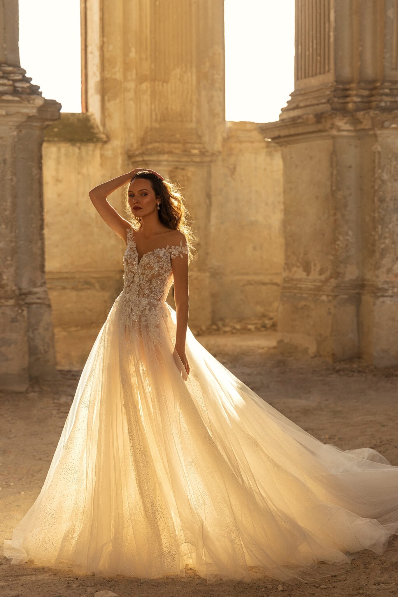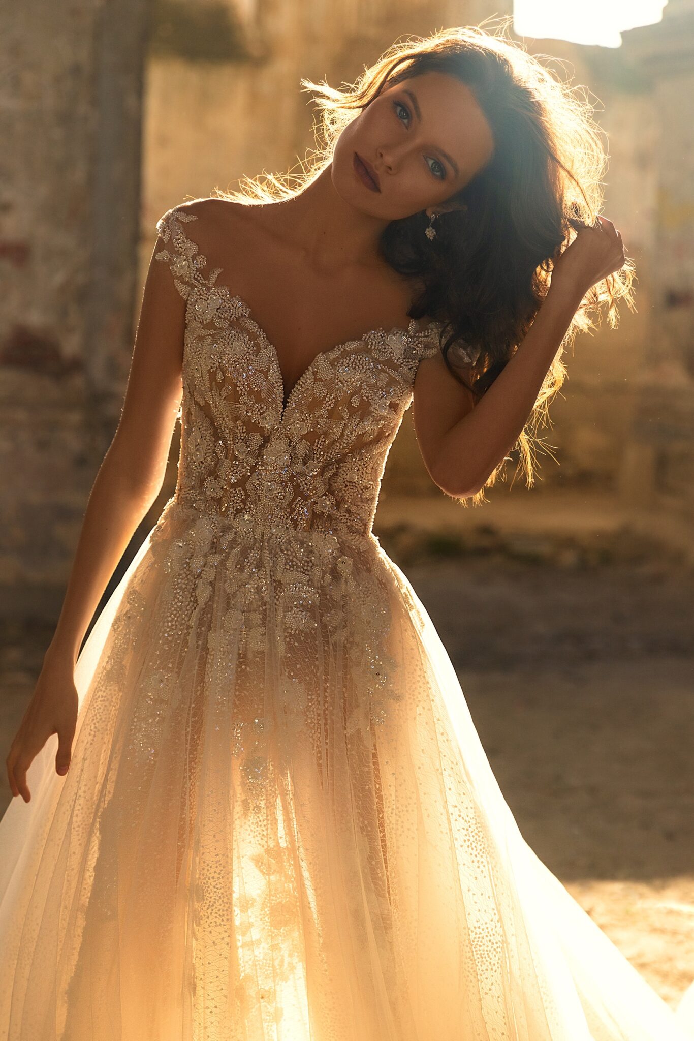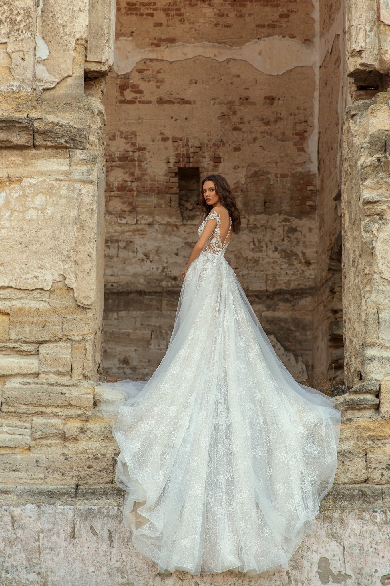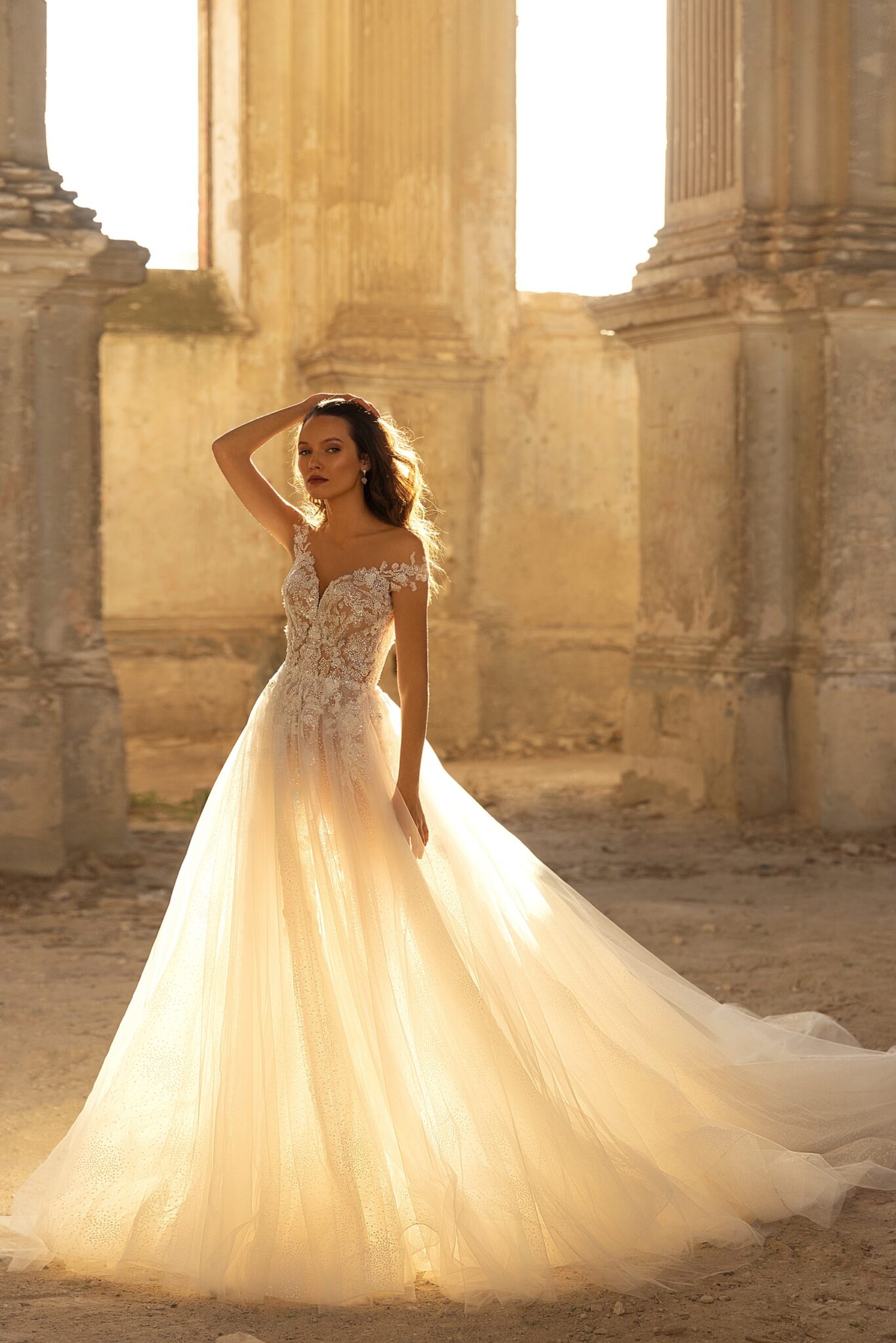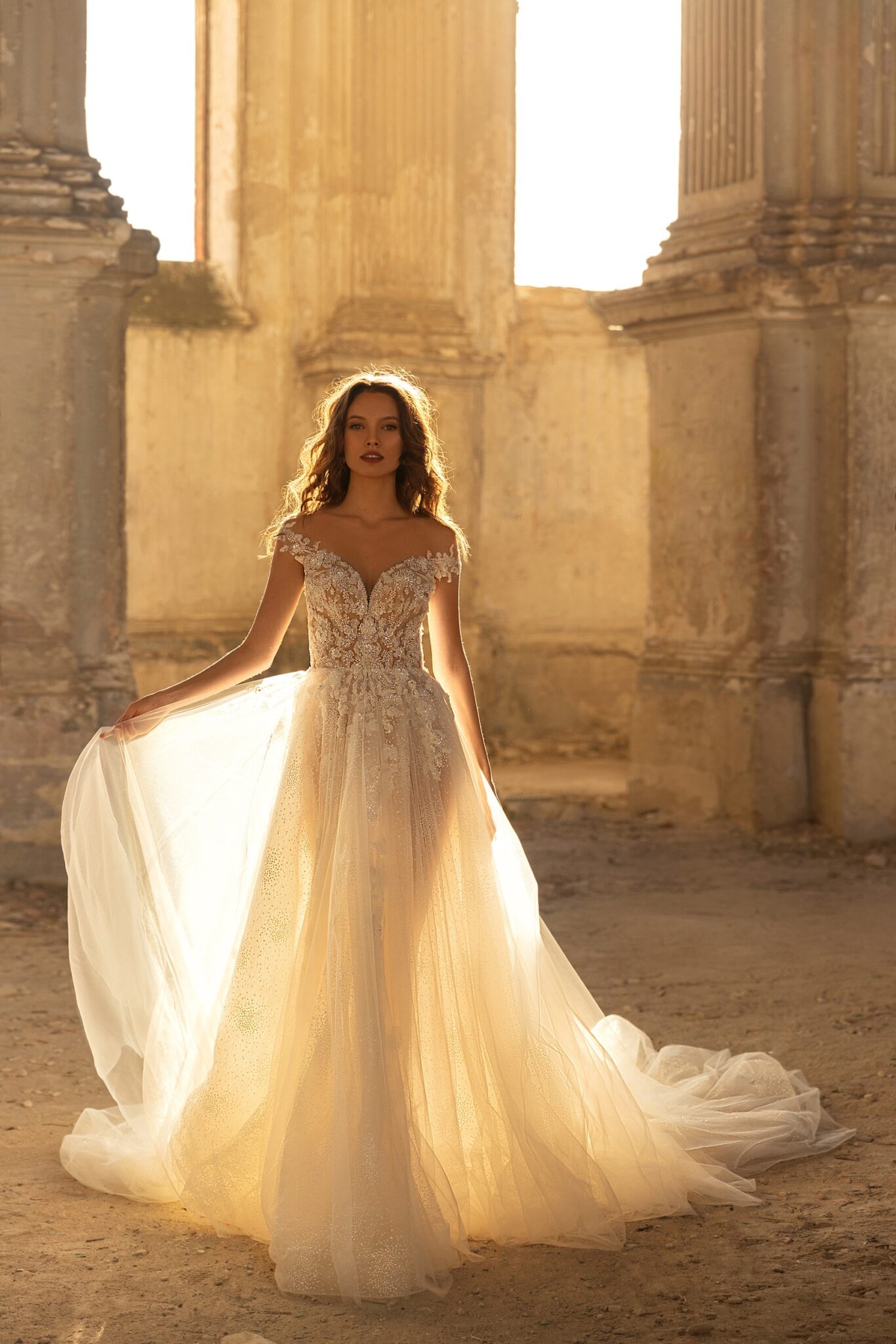Veronika – легка весільна сукня зі сердечкоподібним вирізом і відкритими плечима. Спідниця виготовлена з того ж мережива, що і корсет.