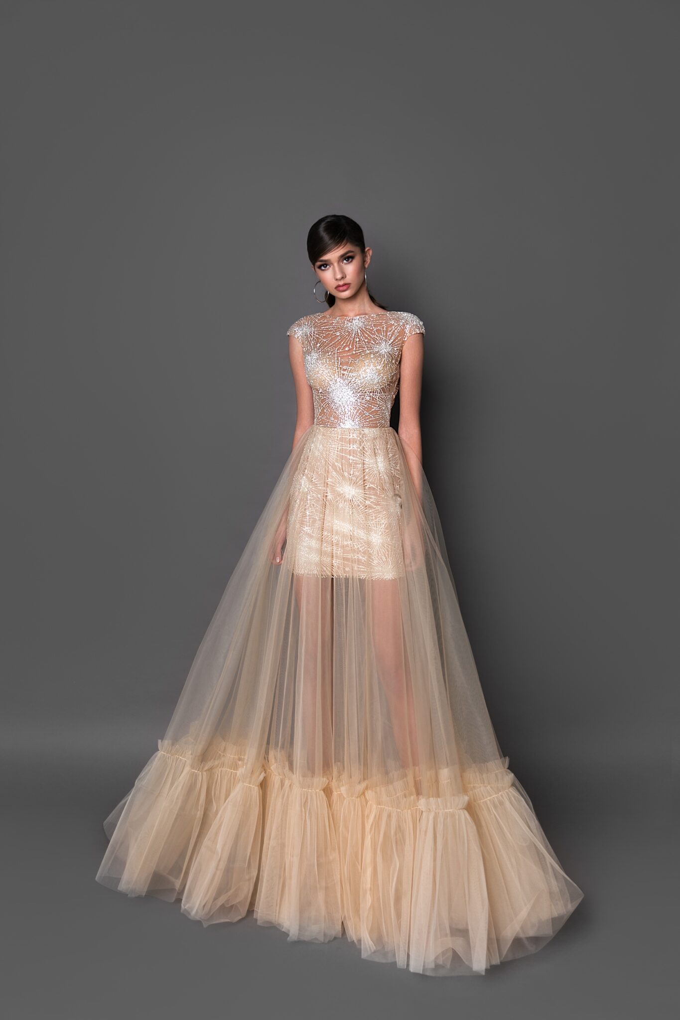 Дозвольте собі виглядати бездоганно в платті 19203. Його колір Cappuccino, Original, Sparkle, Tulle тканина та A-line силует підкреслять вашу індивідуальність.