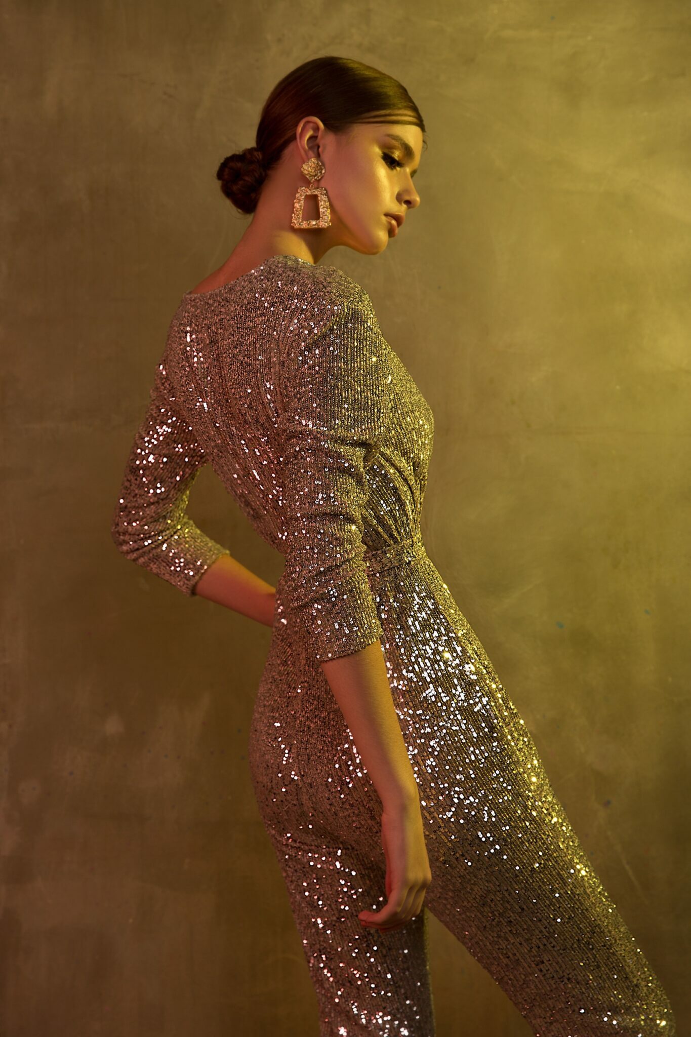 В платті 19226 кожна дівчина буде виглядати як зірка. Його колір Blush, Cappuccino, Dark grey, Emerald, зроблене з Sparkle та Jumpsuit силует вражають своєю вишуканістю.