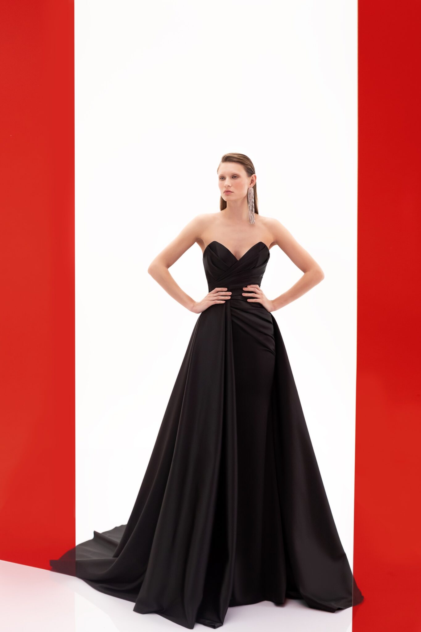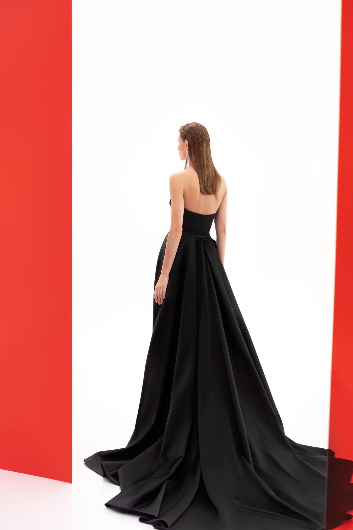 В платті 22103 ви будете в центрі уваги. Його колір Black, Blue, Cappuccino, Red, Royal, Emerald, fuxia, розкішна тканина Satin та Fitted with overskirt силует нададуть вам особливого шарму.