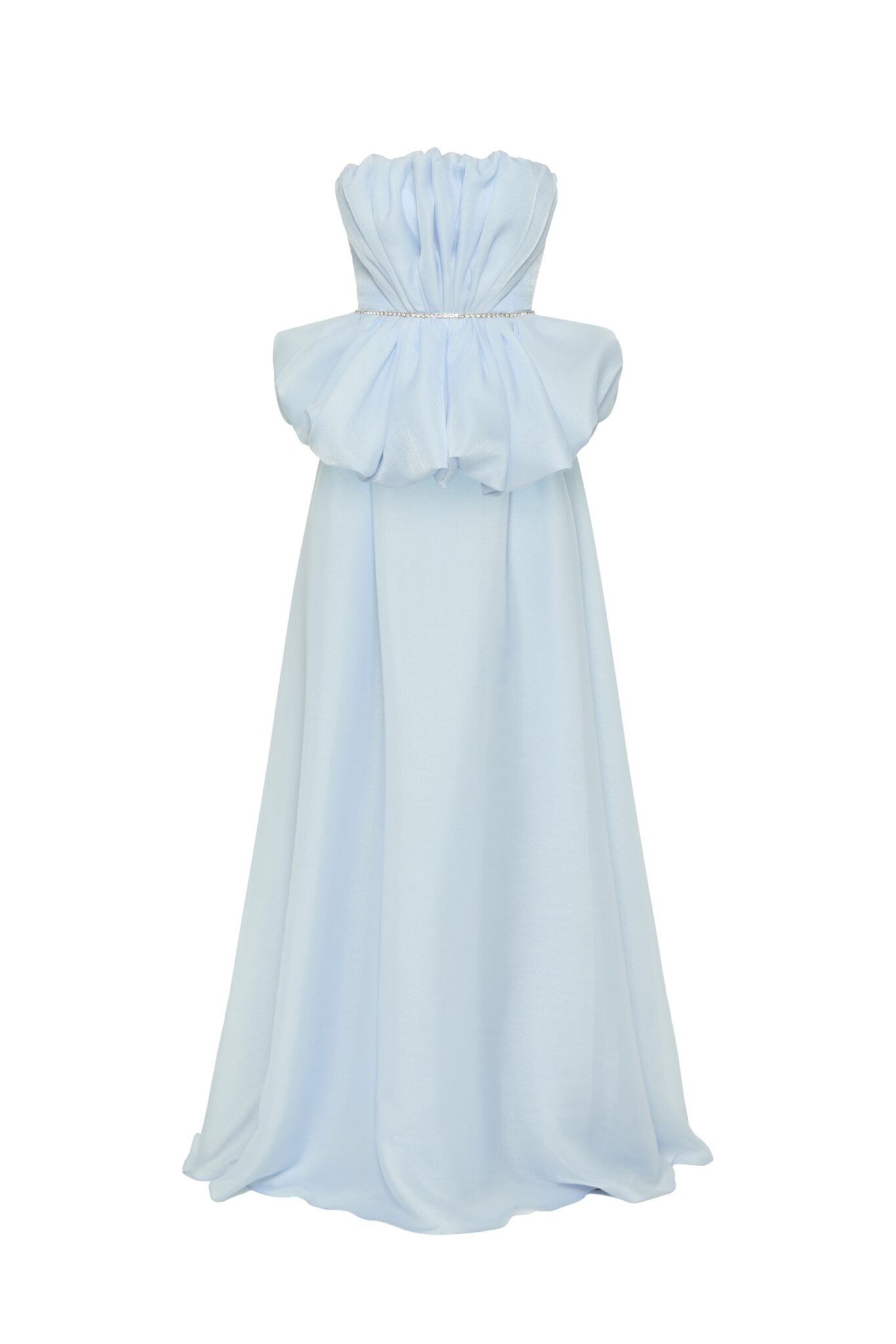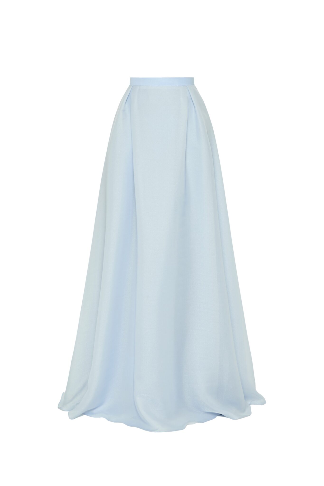 Ця вишукана блакитна максі-спідниця, виготовлена з повітряної органзи, створює витончений і плавний силует. Завдяки ніжній текстурі та елегантній довжині вона ідеально поєднується з нашим корсетом, пропонуючи гармонійний образ для особливих випадків або вечірніх заходів.