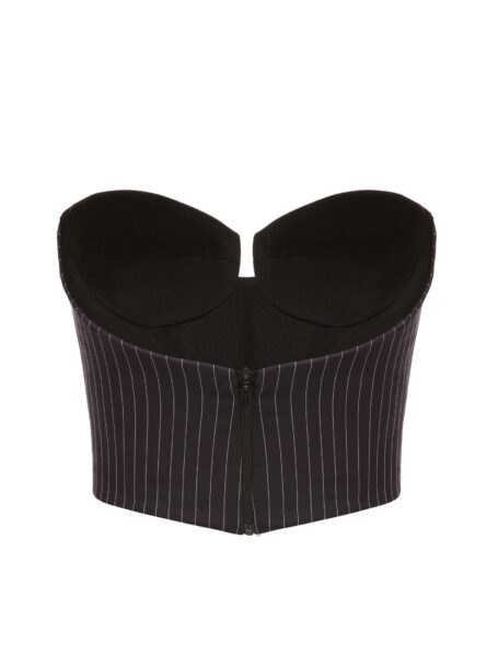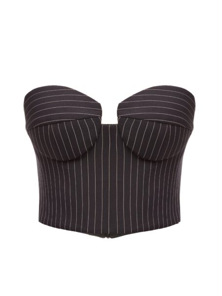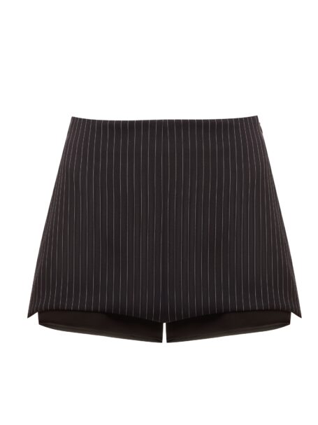 Цей темно-синій піджак у смужку додає чіткого, вишуканого штриху до будь-якого вбрання завдяки своєму вільному крою та класичним смужкам. Він ідеально поєднується зі смугастим топом і спідницею-шортами в тон, створюючи вишуканий і скоординований образ. Чисті лінії та позачасовий дизайн роблять його елегантним доповненням до будь-якого шикарного ансамблю.