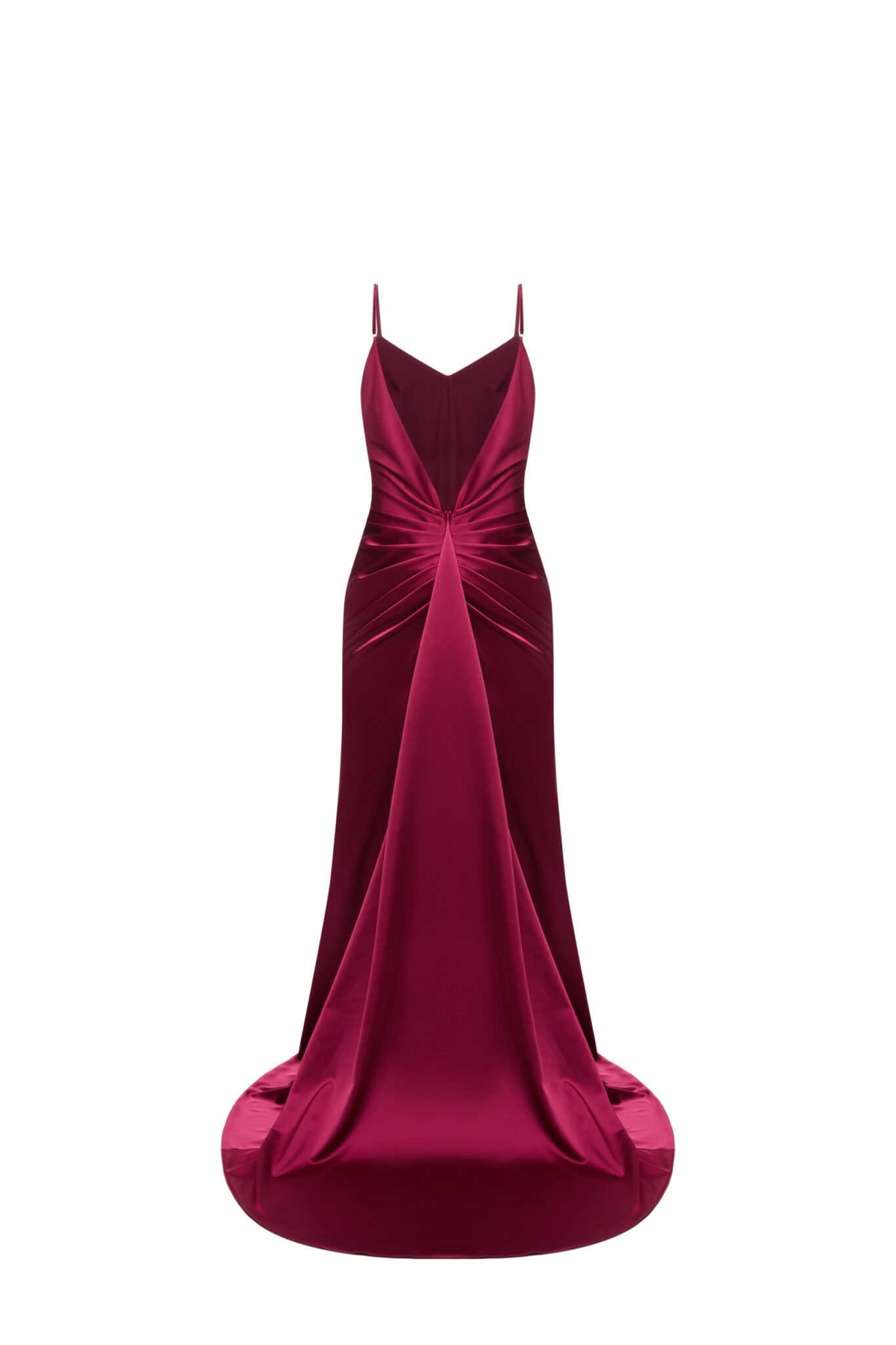 Ця розкішна бордова атласна сукня має приголомшливий дизайн спинки, що додає витонченому силуету спокусливих штрихів. Декоративні елементи підкреслюють вишуканість сукні, створюючи ідеальний баланс стилю та чарівності. Ідеальна для особливого вечора, ця сукня випромінює позачасову елегантність та сучасну привабливість.
