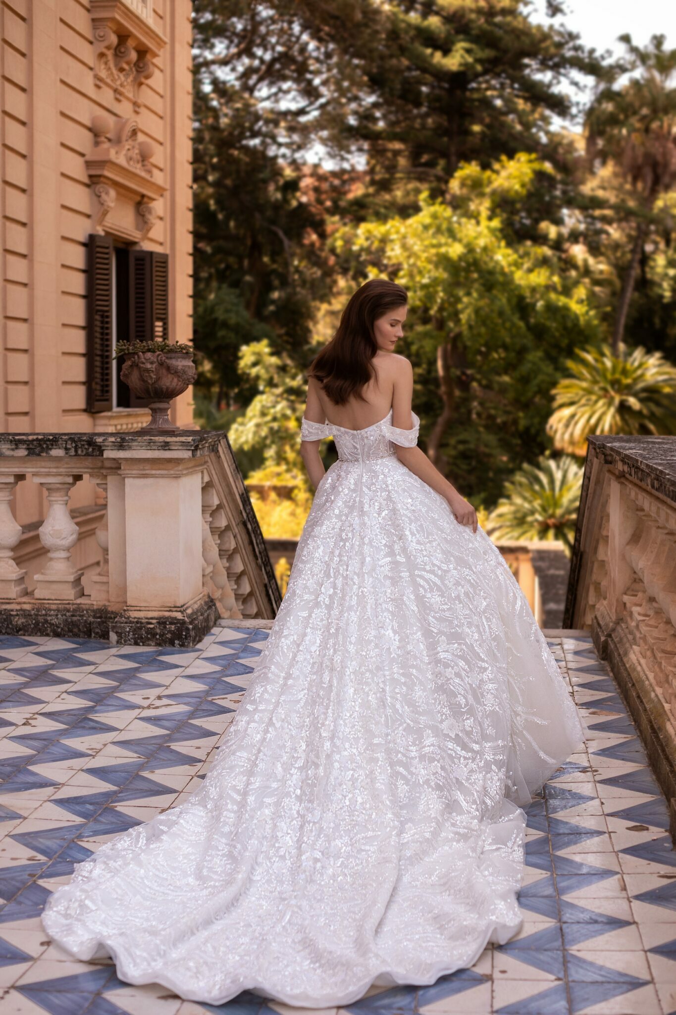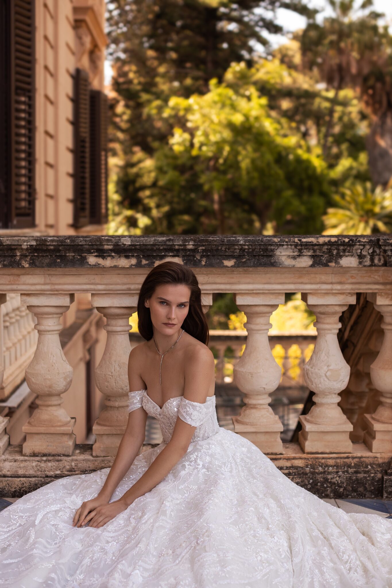 Надзвичайні деталі майстерності та класичний бальний силует роблять це величне плаття принцеси неймовірно красивим. Виготовлене з м’якого блискучого та витонченого тюлю з багатою вишивкою на корсеті та романтичними опущеними рукавами, плаття має прекрасний корсет з серцевидним вирізом та неймовірним поясом з кристалами. Плаття прикрашене вишивкою у вигляді малюнка на корсеті та квітковим тюлем з зубчастою обробкою та видатним шлейфом.