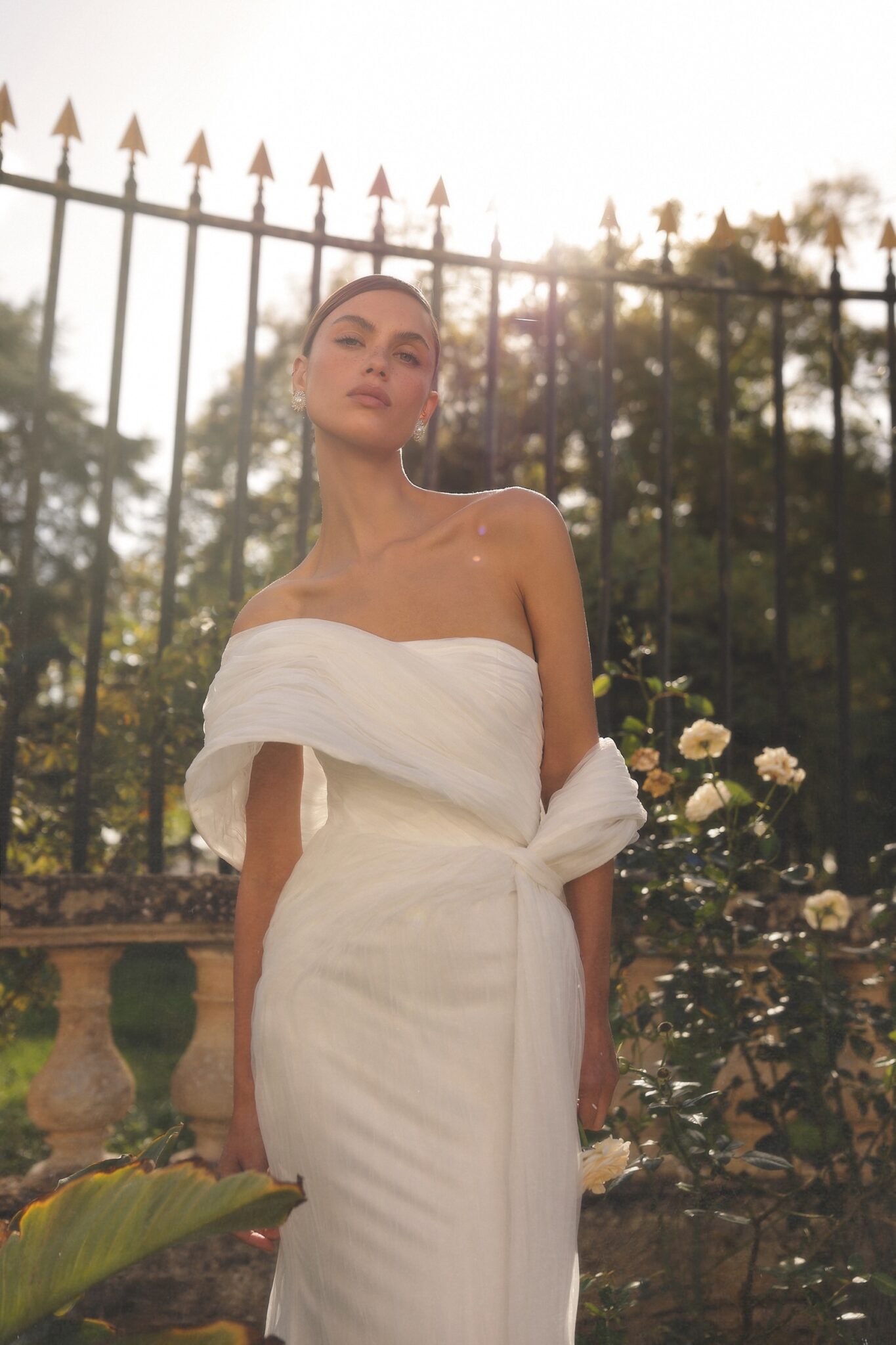 Прямий виріз гармонійно доповнений ефектним болеро, яке додає образу об’єму, гламуру та кутюрного звучання.