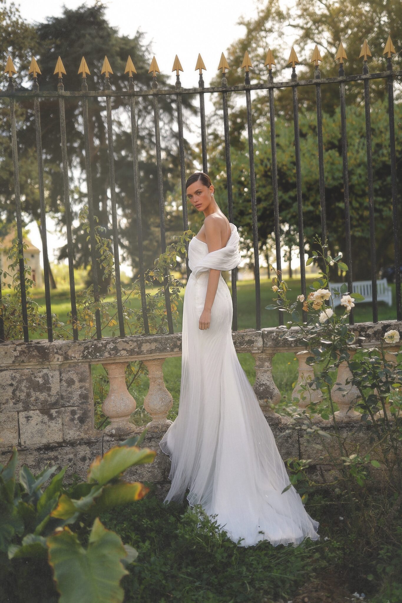 Завершує образ делікатний, плавний шлейф ззаду – ідеальний вибір для наречених, які шукають сучасний та елегантний образ.