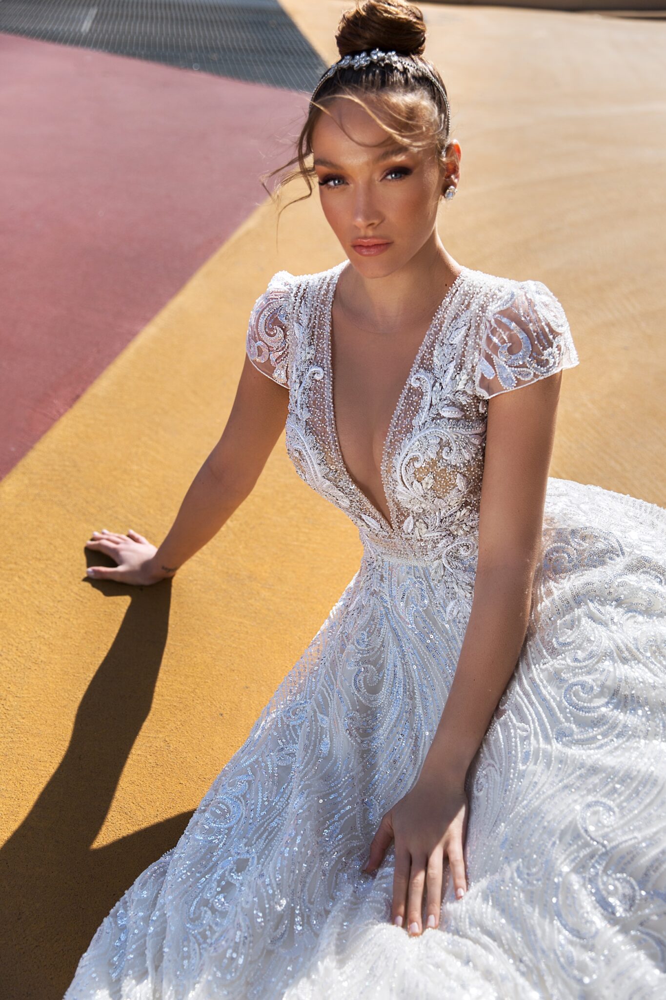 Ця весільна сукня – втілення вишуканості та елегантності. Кожна деталь створена з метою зробити вас справжньою принцесою на вашому особливому дні. Вона підкреслить вашу красу та додасть вам впевненості, забезпечуючи неповторний образ на весь день.