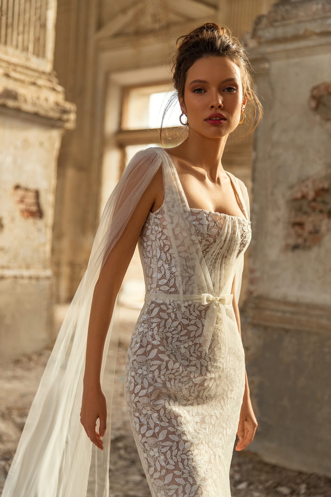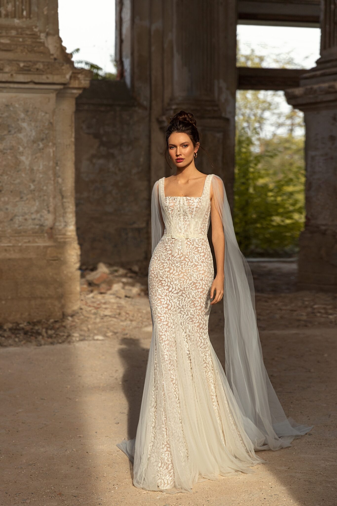 Liana є весільною сукнею з мереживним малюнком у вигляді листя, повністю оздобленої мереживом, з деталями з тюлю на рукавах. Сукня поєднує в собі модний квадратний виріз і силует у формі русалки.