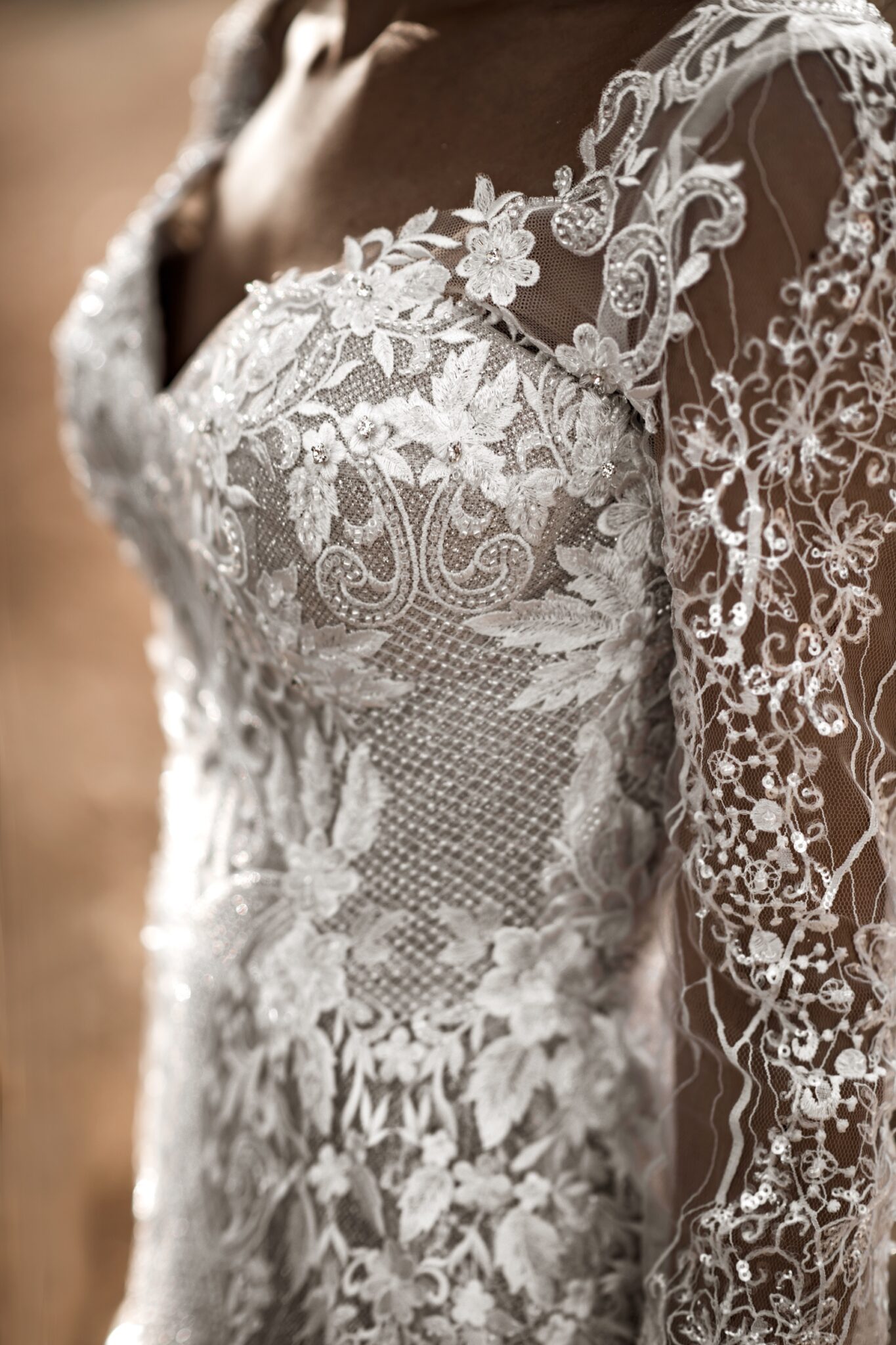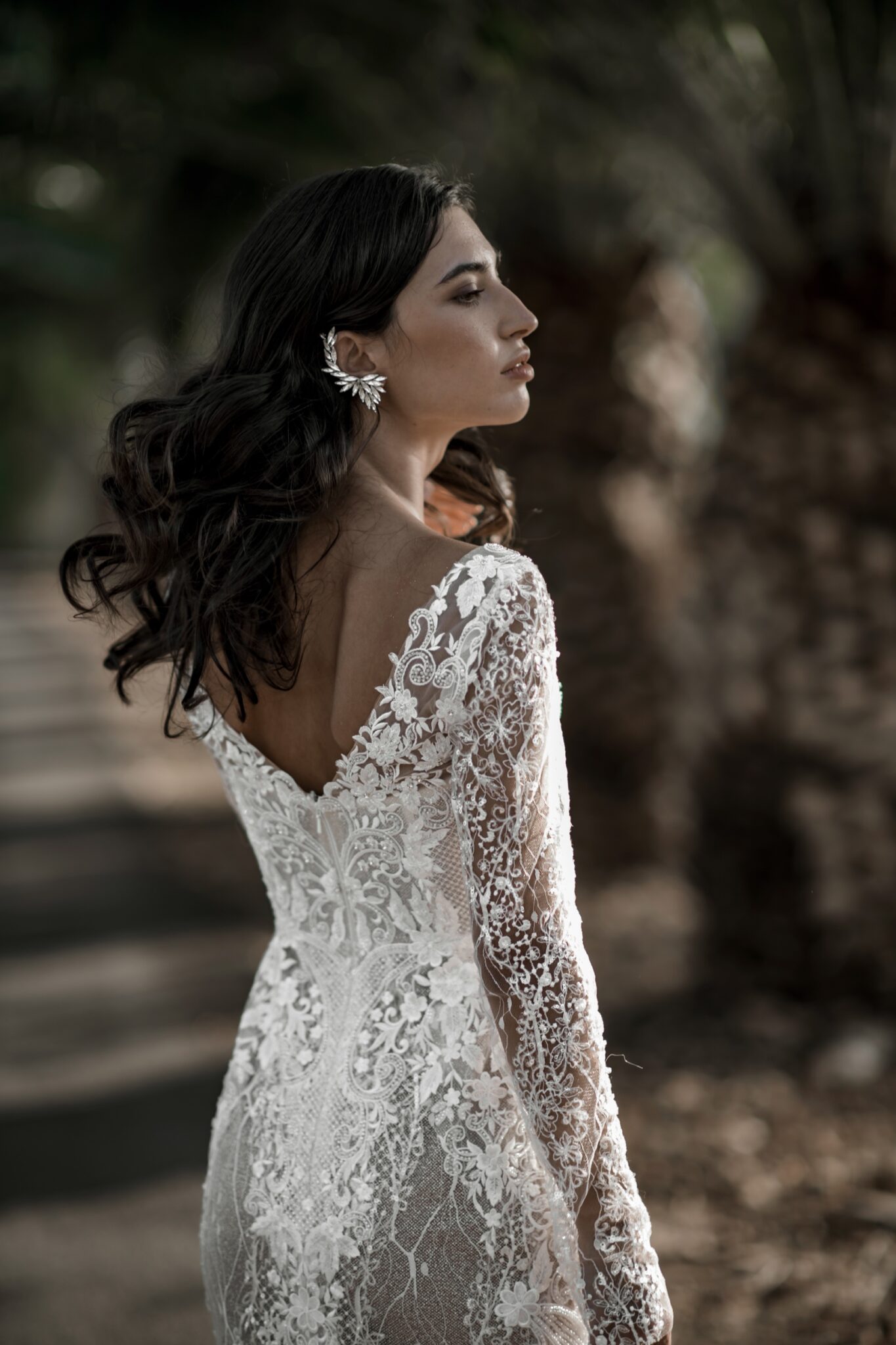 Весільна сукня Luisa з мережива – це класична рибка. Глибокий V-подібний виріз та розріз на спині підкреслюють ніжність шиї та ключиці нареченої. Довгі рукава прикрашені білими гудзиками. Чудовий шлейф додає особливого шарму.
