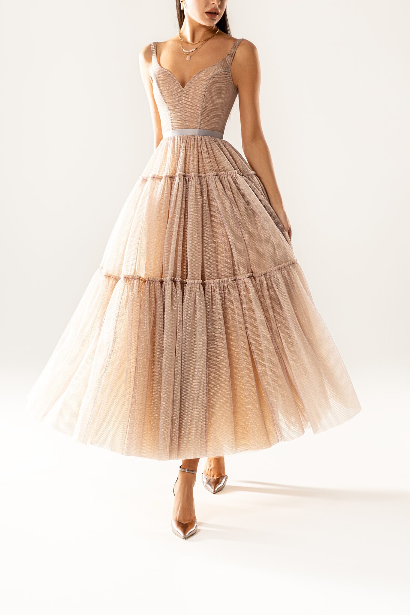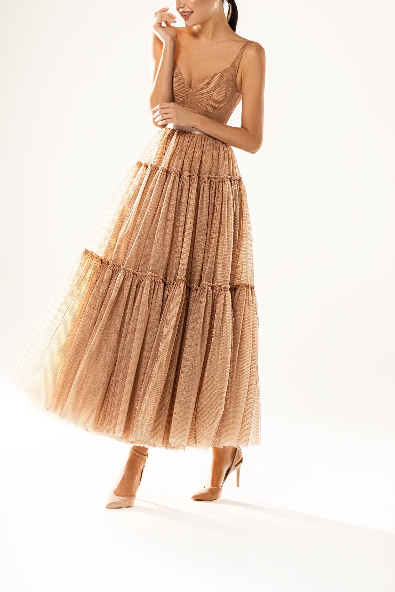 Відчуйте себе на вершині світу в платті 21123. Його колір Black, Dark gold, Lavender, Red, Tulle тканина та A-line силует підкреслять вашу жіночність.