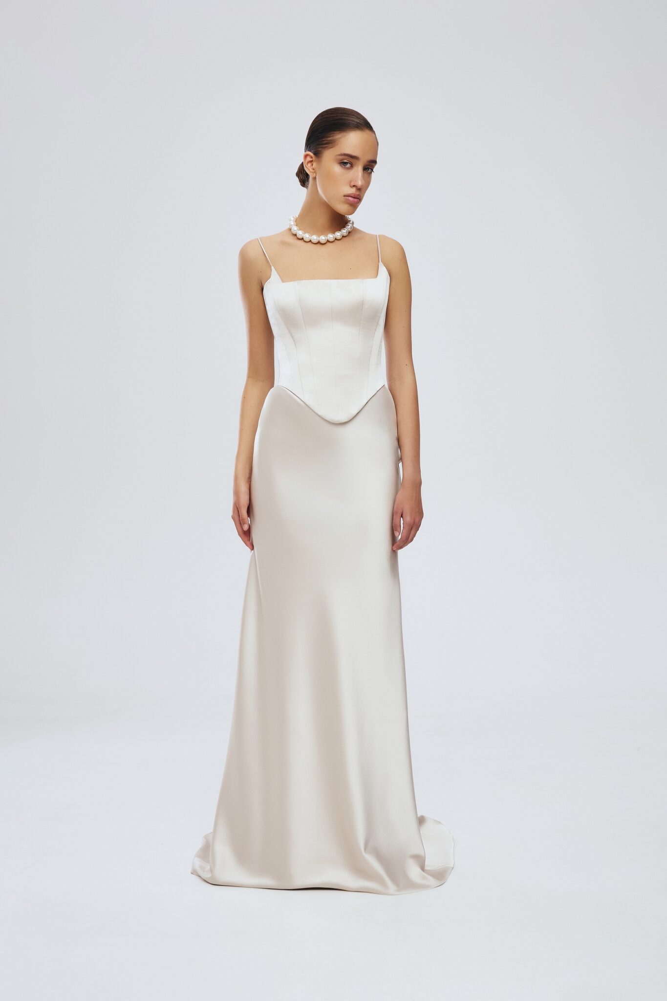 Ця приголомшлива атласна максі-спідниця кольору капучино елегантно спадає до підлоги, пропонуючи витончений силует, що підкреслює будь-який образ. Створена для бездоганного поєднання з корсетом, ця спідниця поєднує в собі розкіш та універсальність, що робить її ідеальною як для офіційних заходів, так і для стильних вечорів.