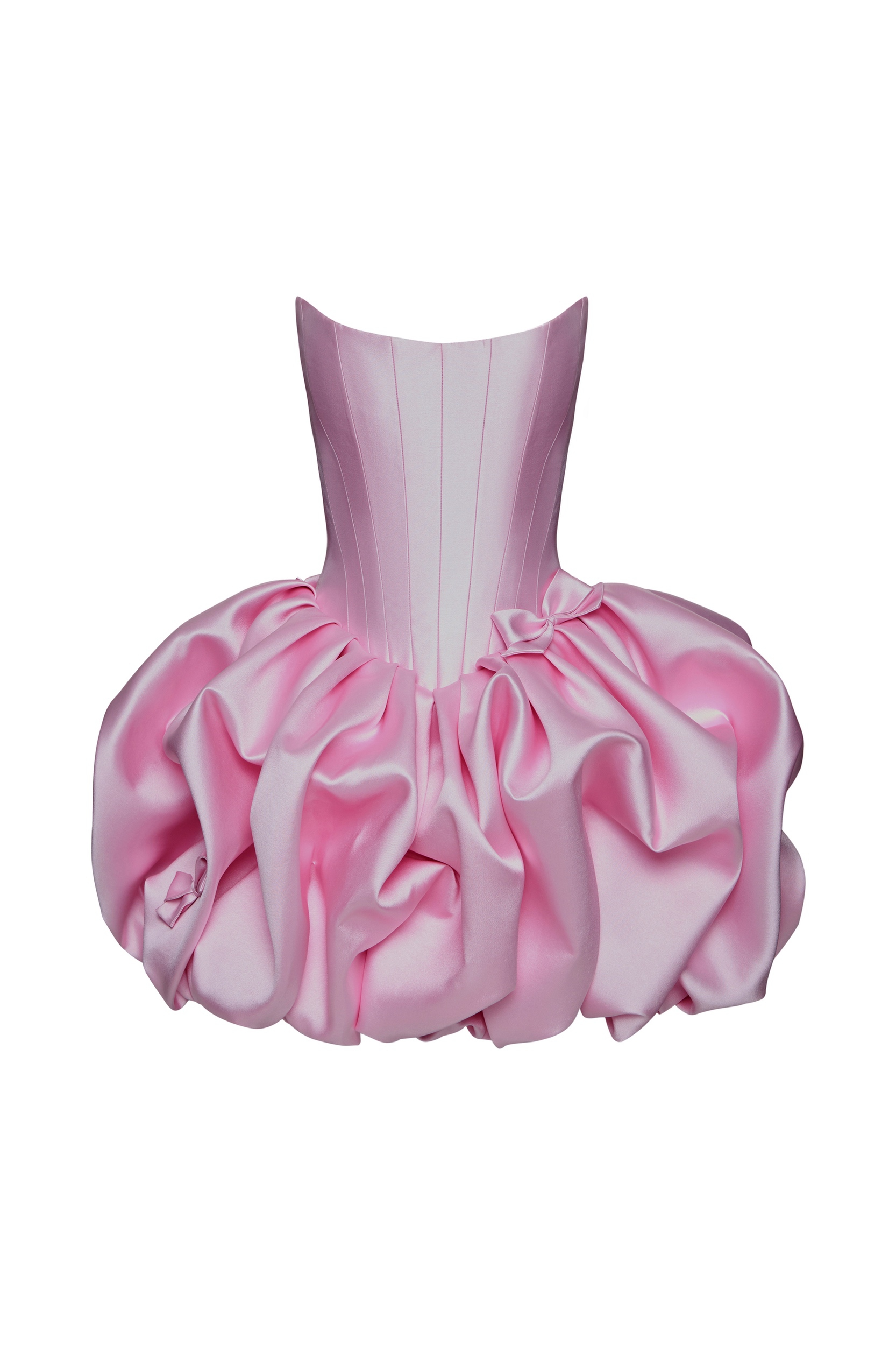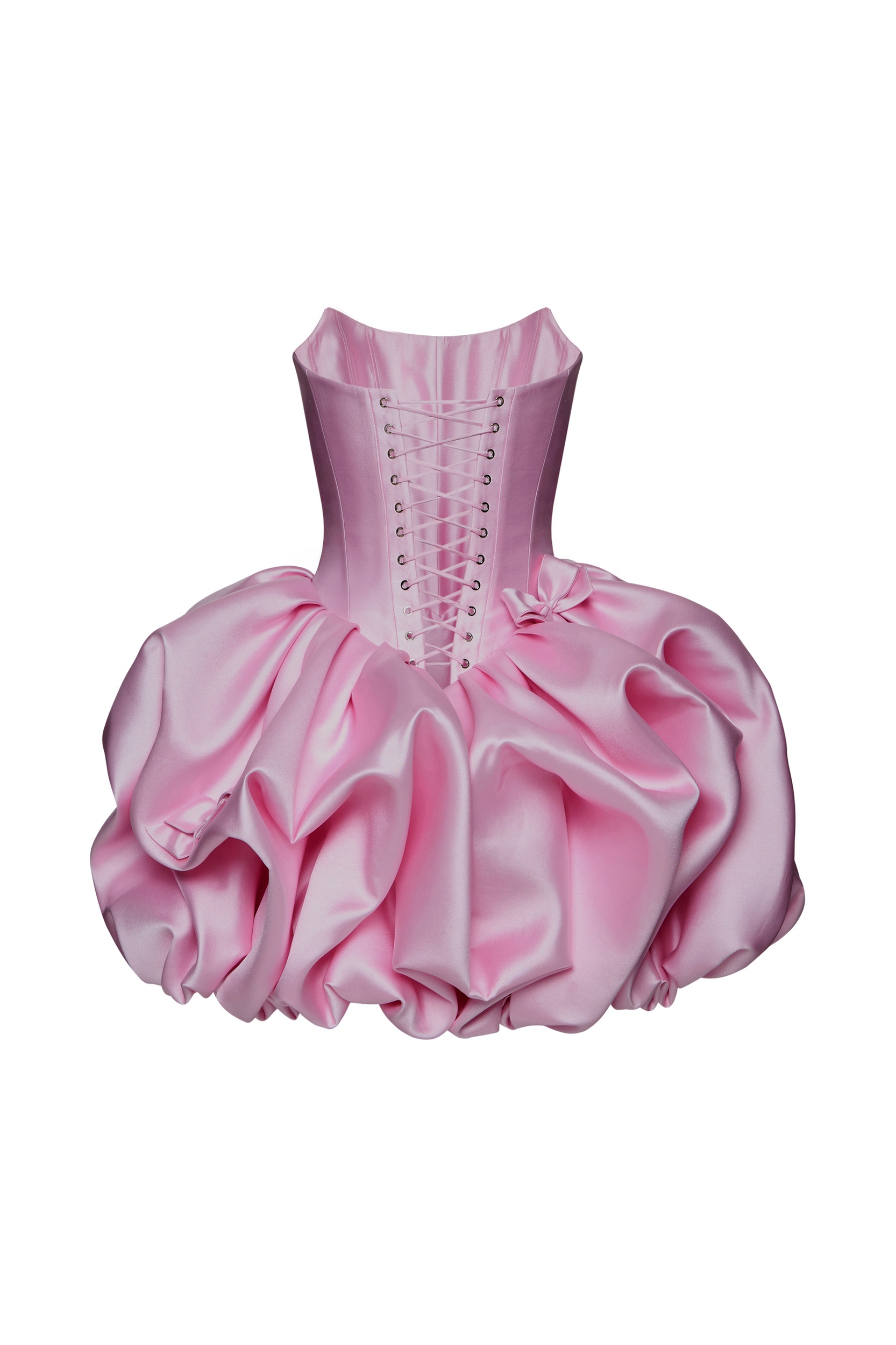 Сукня-стейтмент, в якій вигідно поєдналися жіночний силует на обʼємна деталь у вигляді спідниці, що нагадує маршмеллоу.