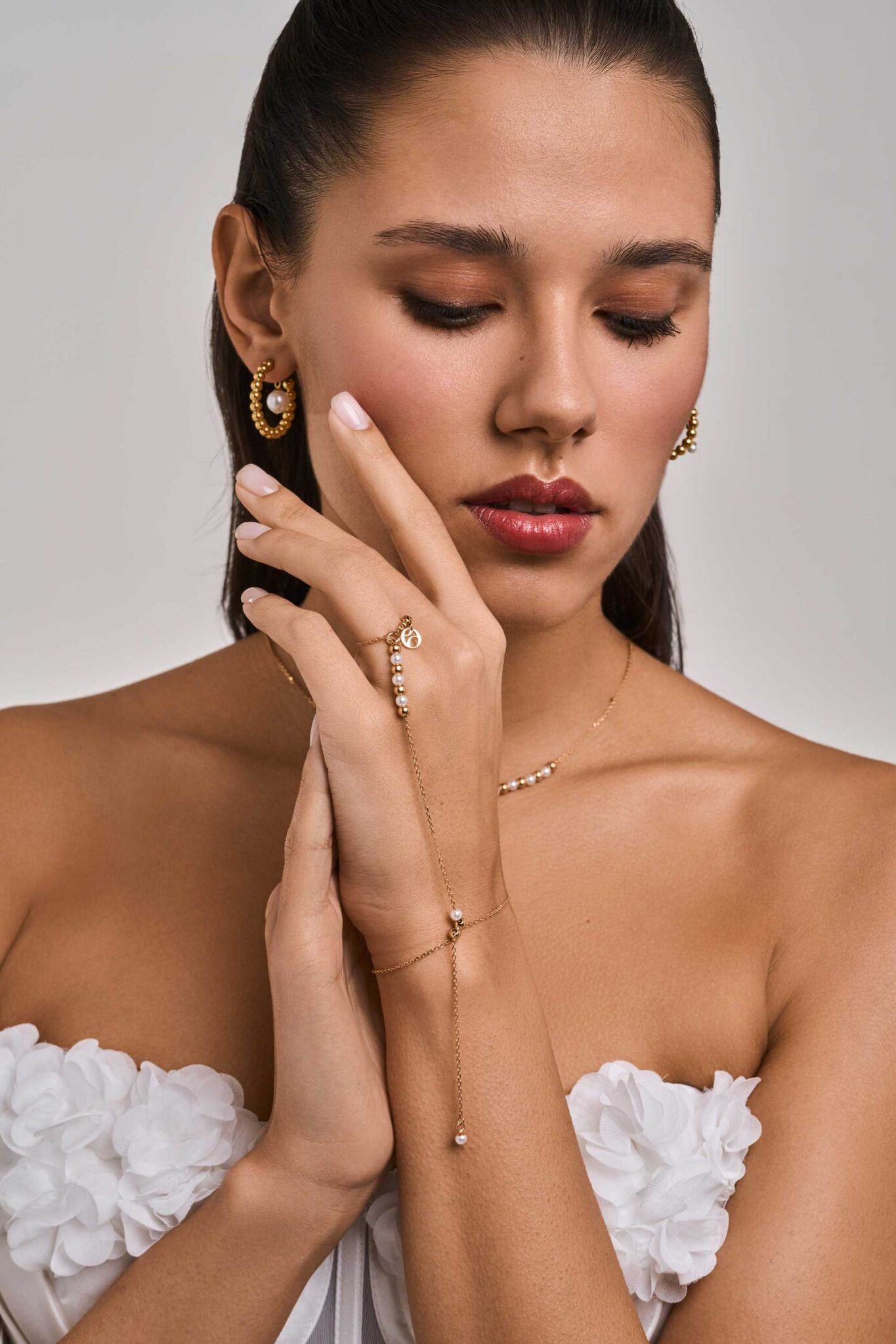 Браслет-трансформер Гра в Хованки. Лаконічний чи виразний? Навіщо обирати, якщо можна змінювати! Браслет-трансформер “Гра в хованки” адаптується до Вашого стилю на настрою. Завдяки інноваційному інженерному дизайну Ви можете приховати або показати рухомі перлини, змінювати форму та пропорції, регулювати довжину і розташування елементів. Носіть як елегантний мінімалістичний браслет удень або як розкішний акцент на вечір. Поєднуйте із кольє та іншими прикрасами з колаборації Woná by Woná x Orxata та створюйте власні варіації стилю. Деталі: Матеріал: срібло 925 проби в покриття. Вставка: штучні перлини. Вага прикрас: 3 грами ±0,5 грама