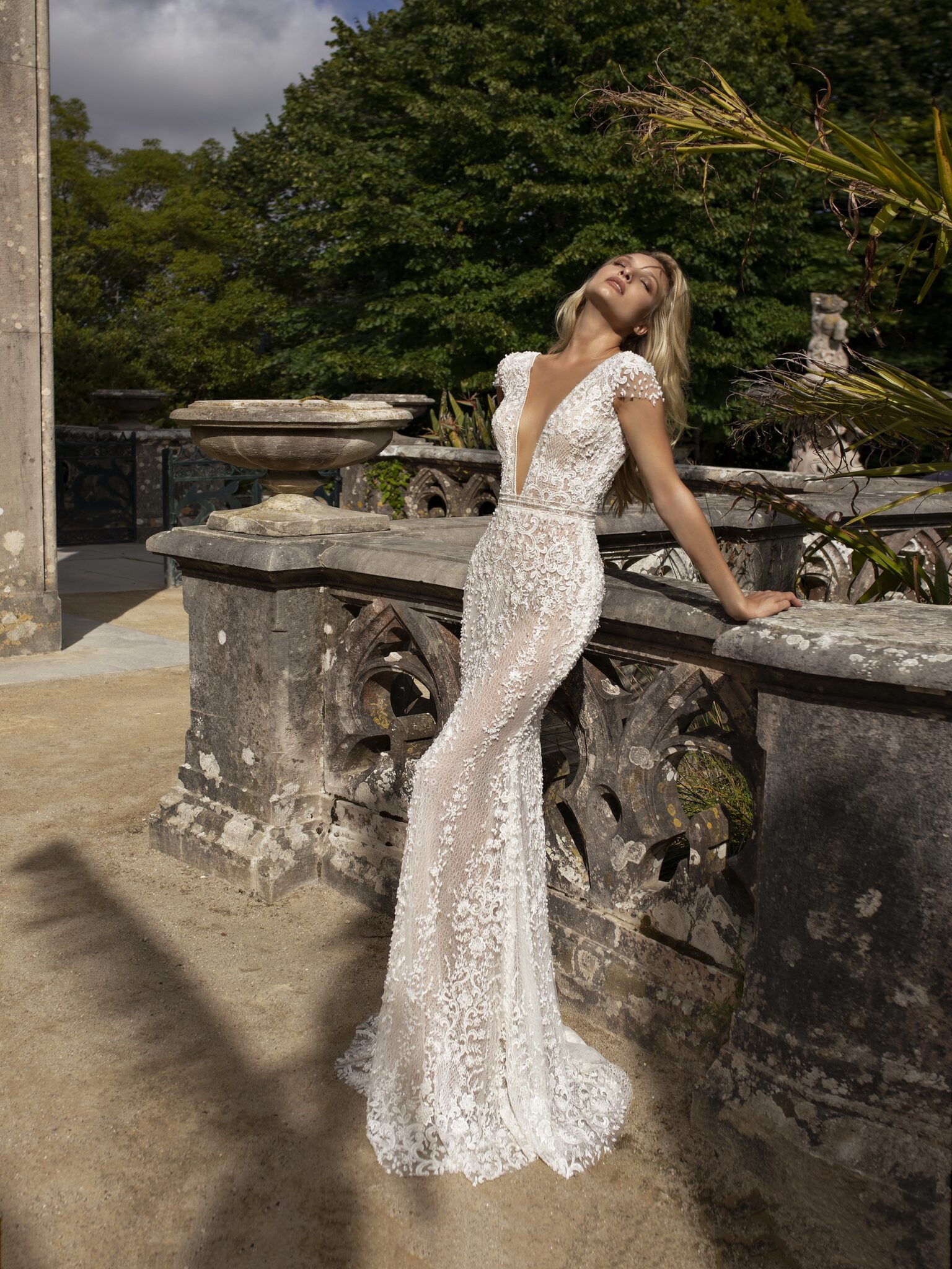 Flame – сукня створює чудовий жіночний силует. Ця весільна сукня повністю прикрашена вишивкою у стилі мережива. Великий V-подібний виріз декольте прикрашений маленькими намистинами. Фантастичний виріз на спинці робить сукню ще більш жіночною. Короткі рукавчики та тонкий ремінець виглядають чудово. Знімний шлейф з вуалю додає урочистості.