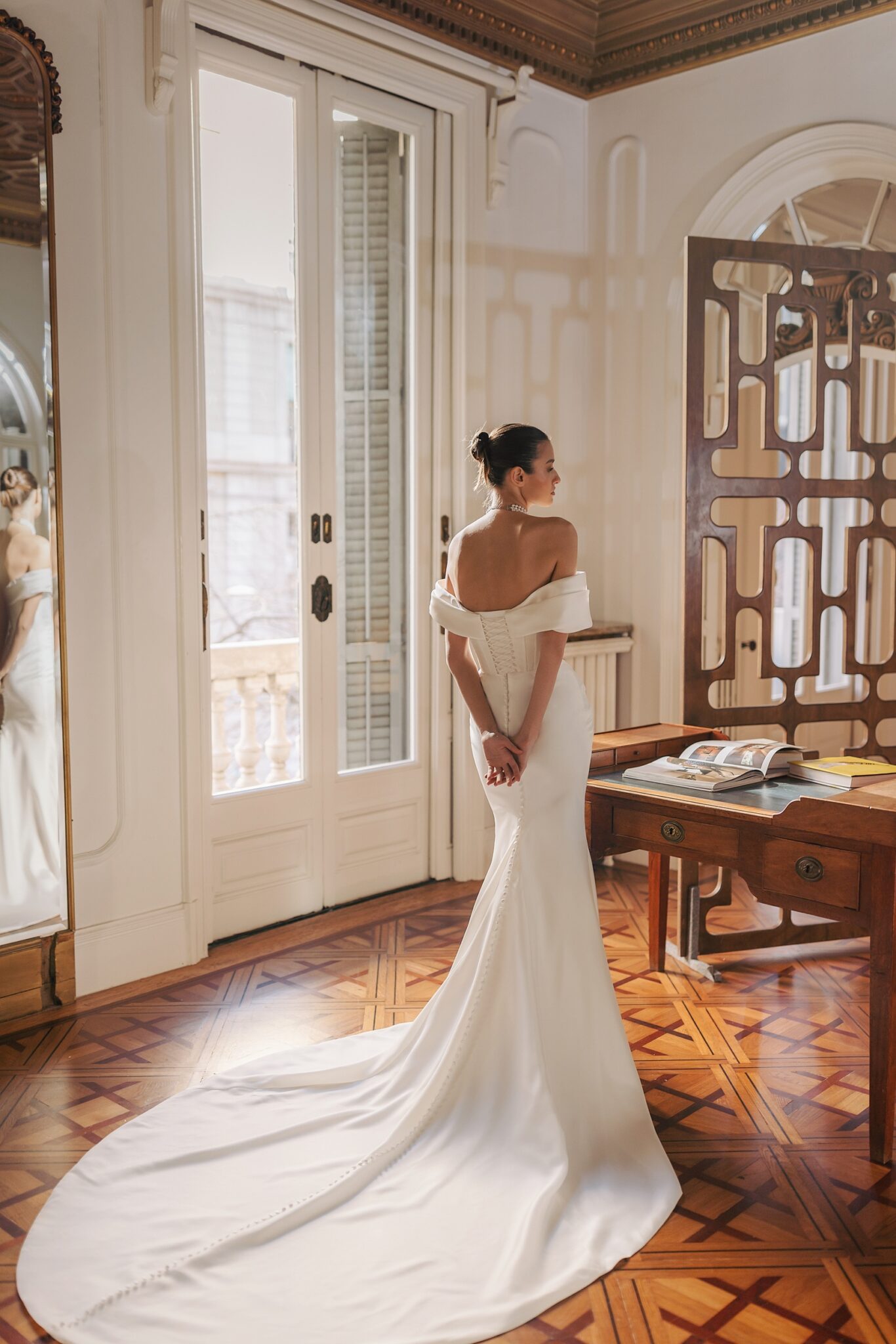 На данный момент выбранное вами платье отсутствует в наличии в шоу-руме для примерки. Чтобы вы не пропустили возможность примерить это изысканное платье, просим вас заполнить форму, и мы сделаем все возможное, чтобы удовлетворить ваш запрос.
