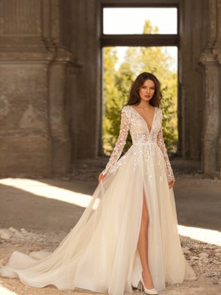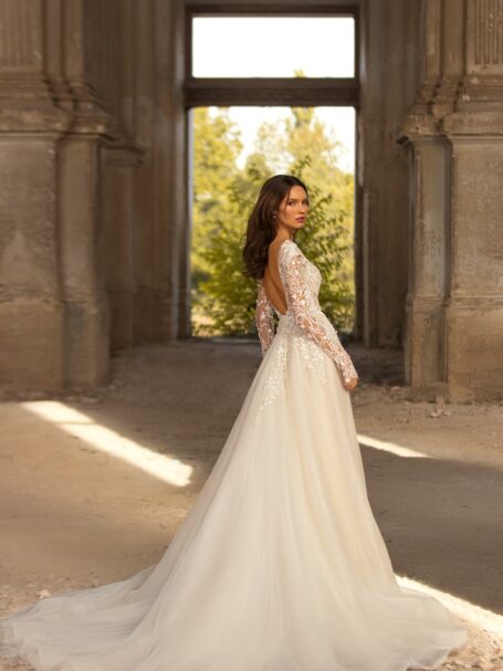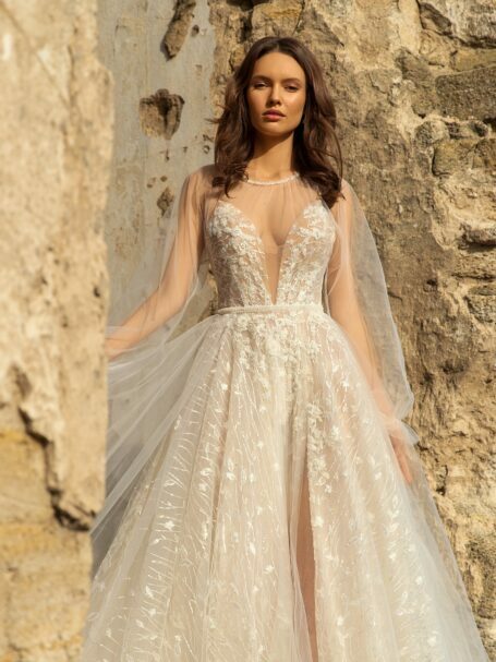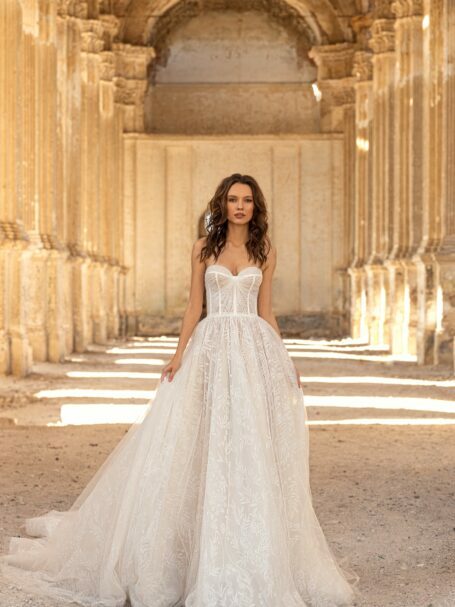 Veronika – легка весільна сукня зі сердечкоподібним вирізом і відкритими плечима. Спідниця виготовлена з того ж мережива, що і корсет.